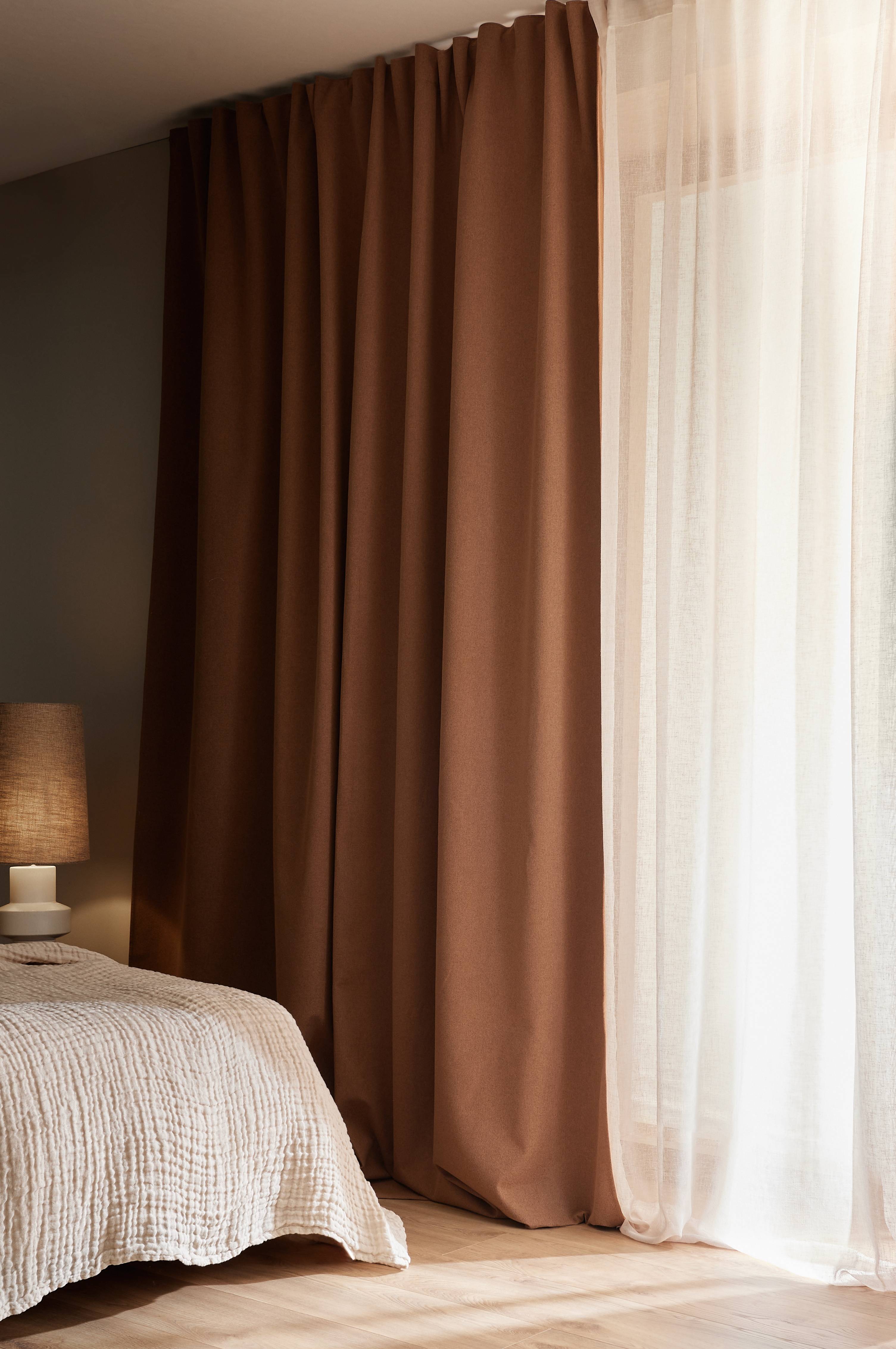 Er meget tilfreds med den grove vævning og tætheden i gardinet, som giver fornemmelsen af høj kvalitet. Gardinet mørklægger som forventet og giver god akustik i mit soveværelse