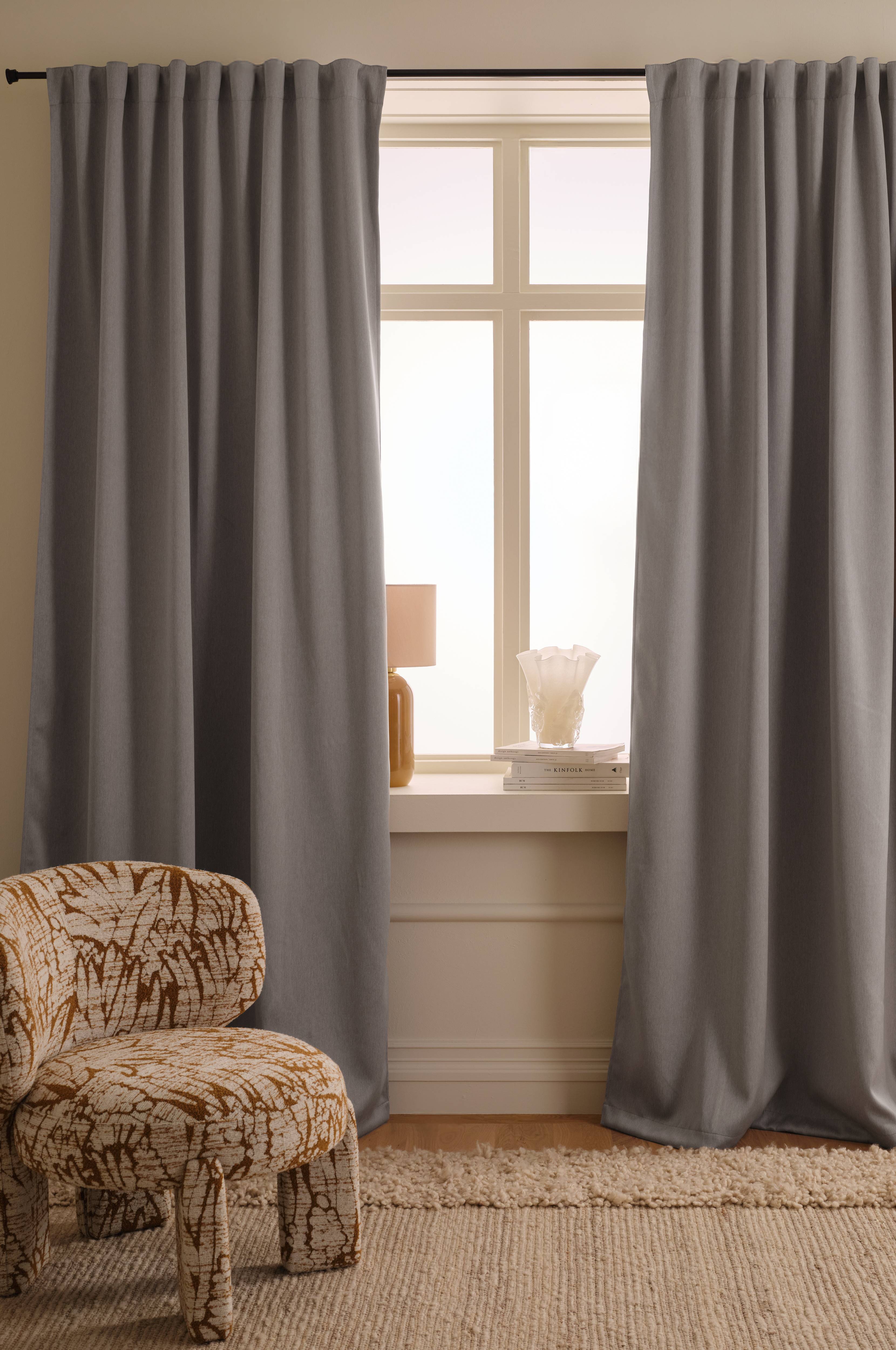 • Multibåndet gør, at du enten kan hænge gardinerne direkte på en gardinstang gennem de skjulte stropper eller anvende ringe, nålekroge eller fingerkroge. Snoren i rynkebåndet gør, at du let kan skabe ensartede, flotte læg.