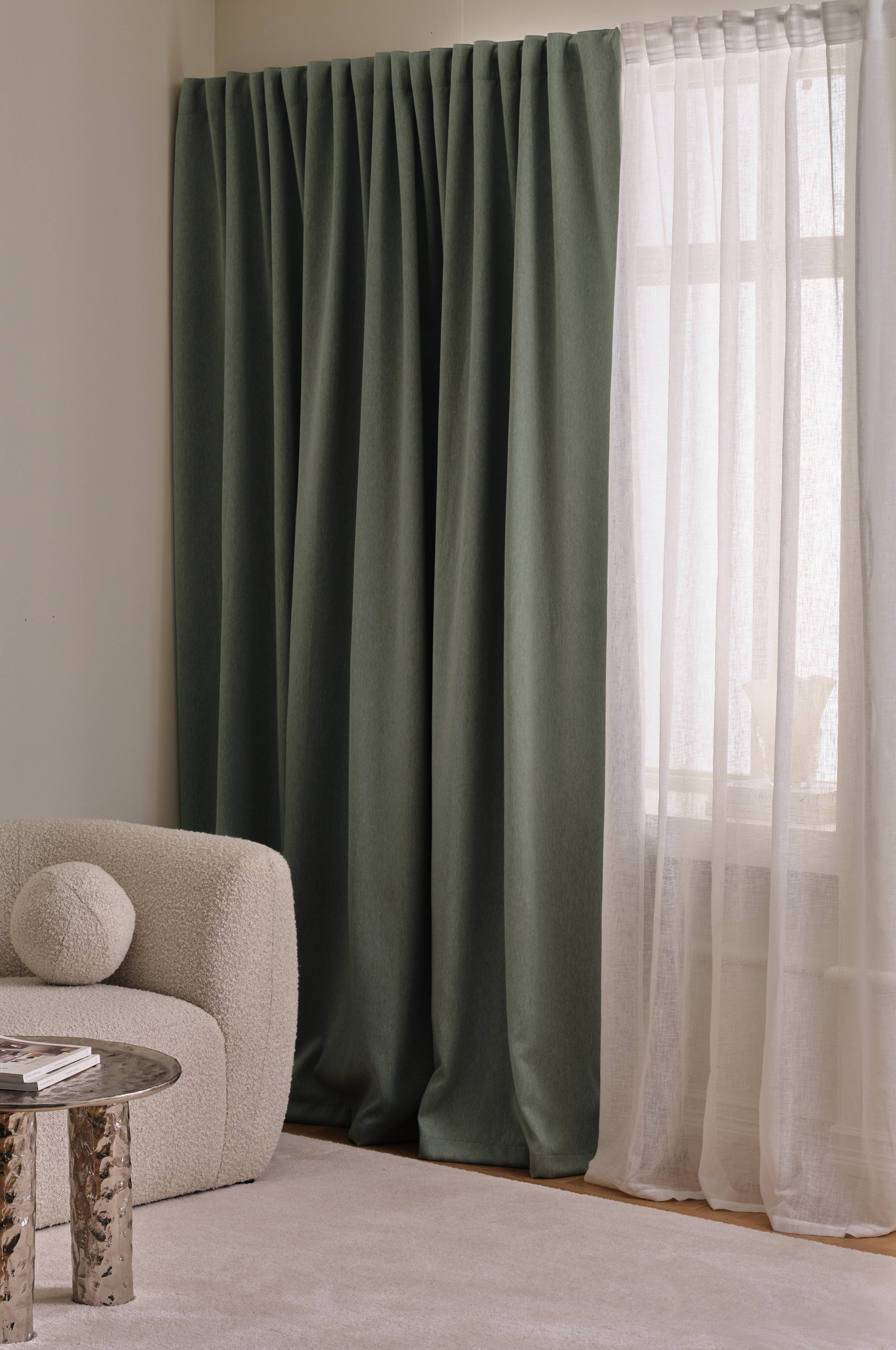 Flotte gardiner, der mørklægger godt, intet lys kommer ind. Flot grøn farve, som jeg forventede ud fra billederne. Ikke for mørke og ikke for lyse, passer perfekt ind i vores gr…