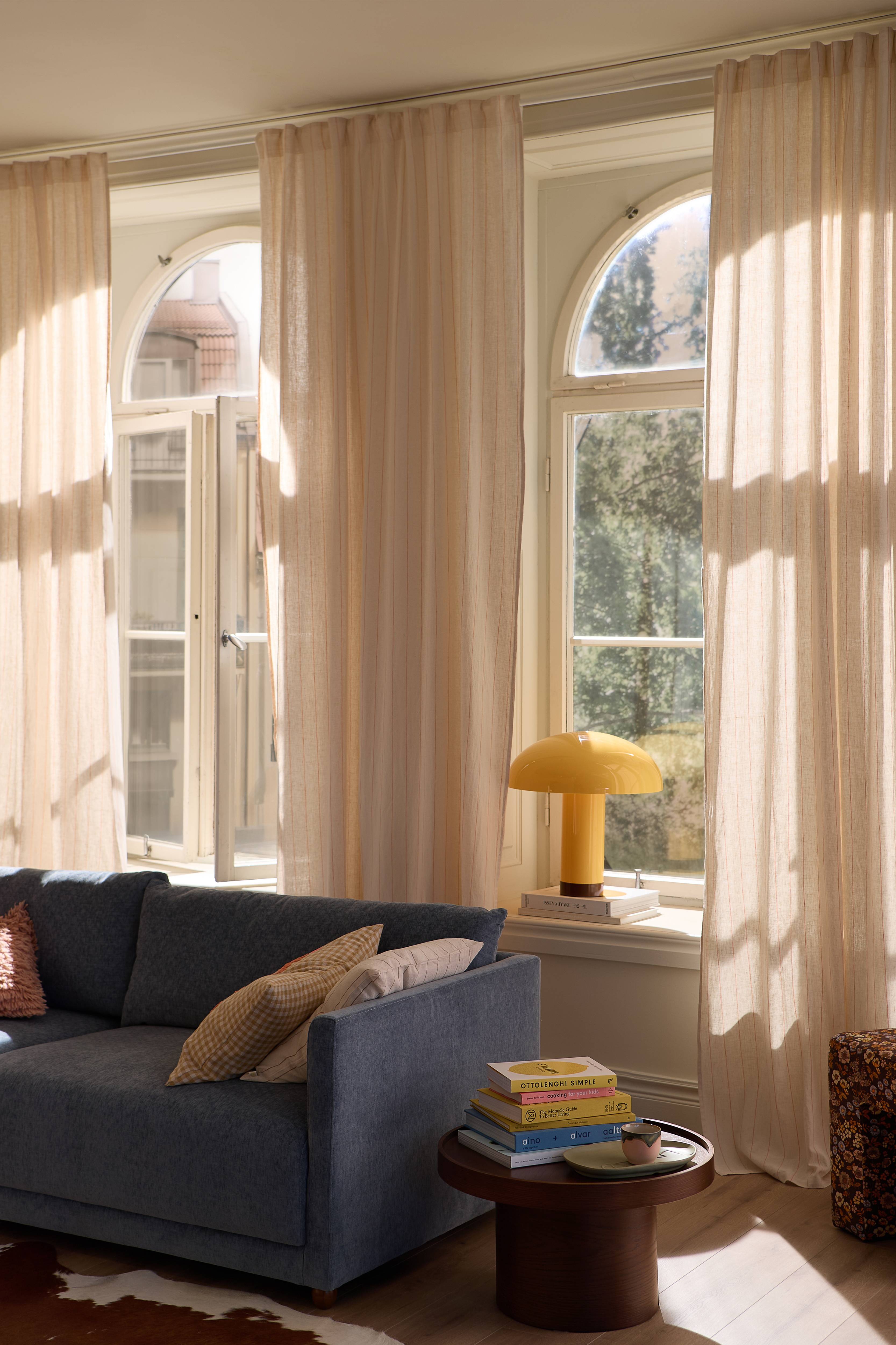 Ellos Home Multibåndsgardin Elly Thin Stripe i genanvendt halvlinned 2-pak