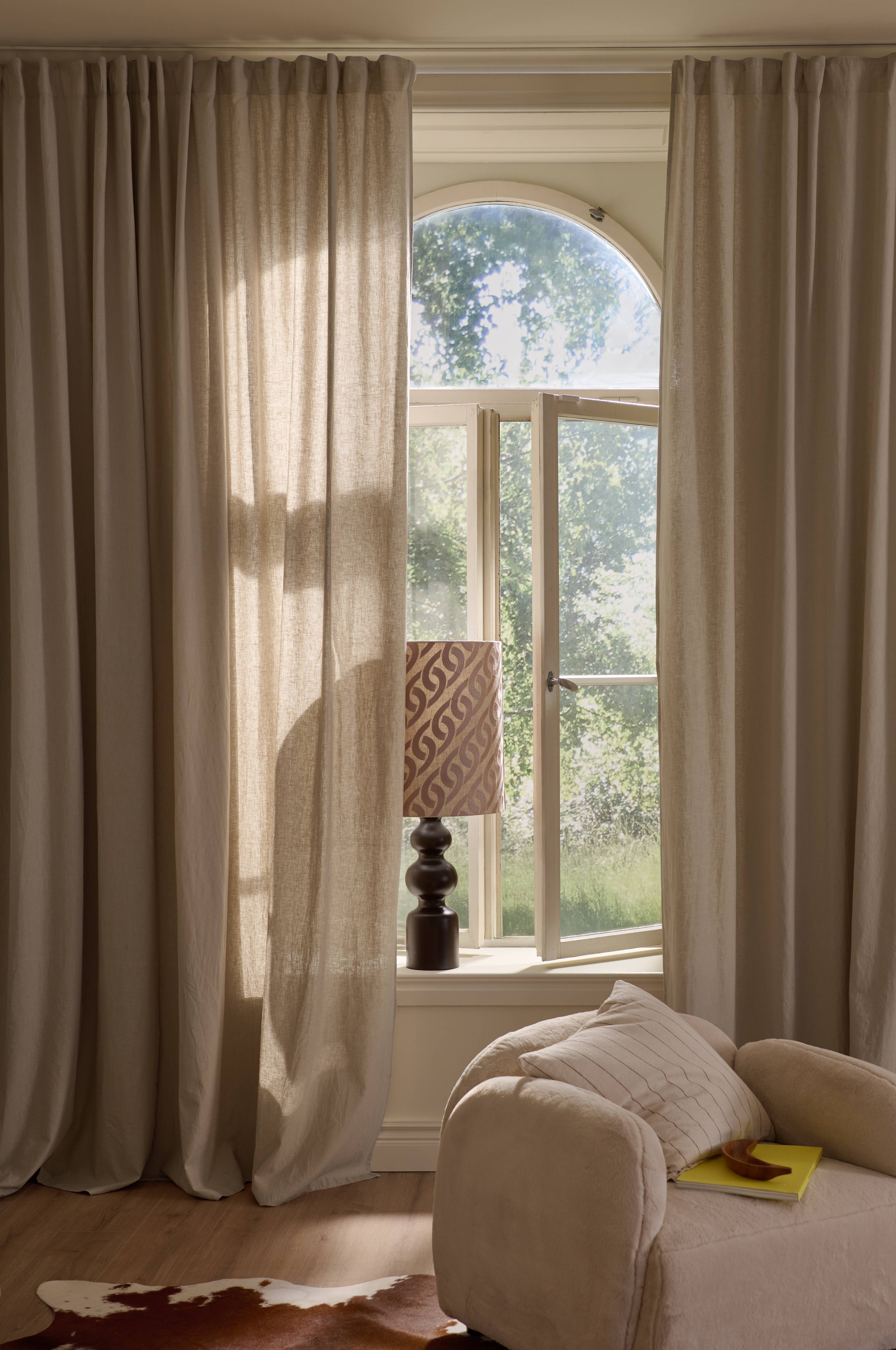 • En ensfarvet Multibåndsgardin i hørblanding