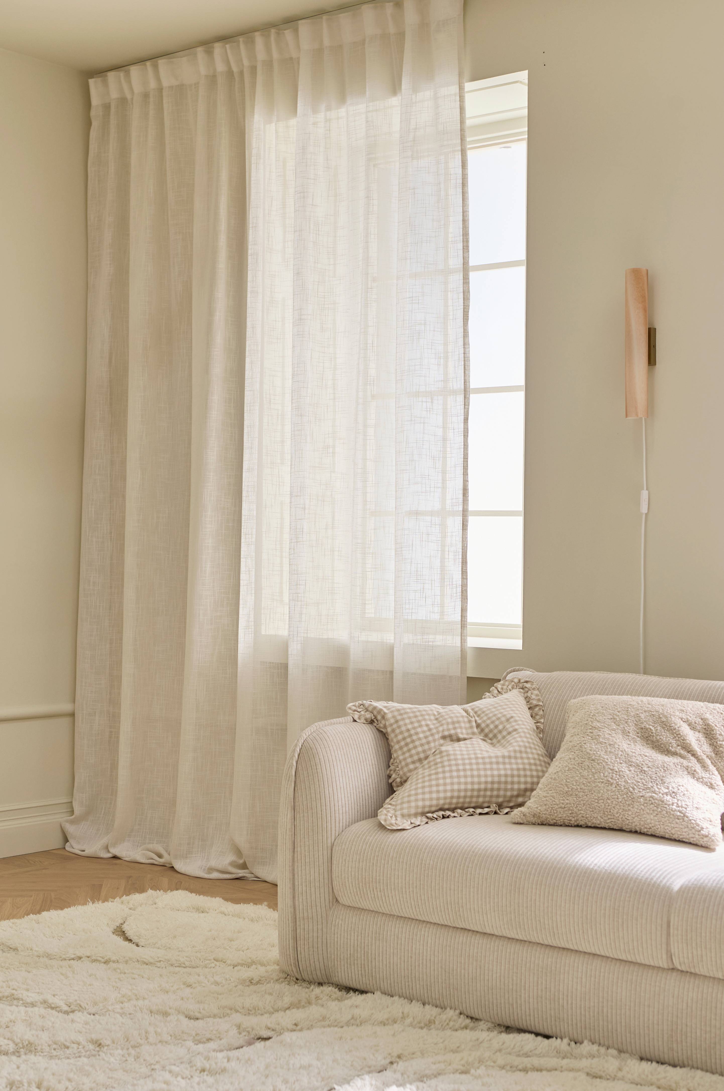 • Multibåndet giver dig mulighed for enten at hænge gardinet direkte på en gardinstang gennem de skjulte øjer eller bruge ringe, nålekroge eller fingerkroge. Snorene i plisseringsbåndet gør det nemt at lave jævne, fine plisseringer.
