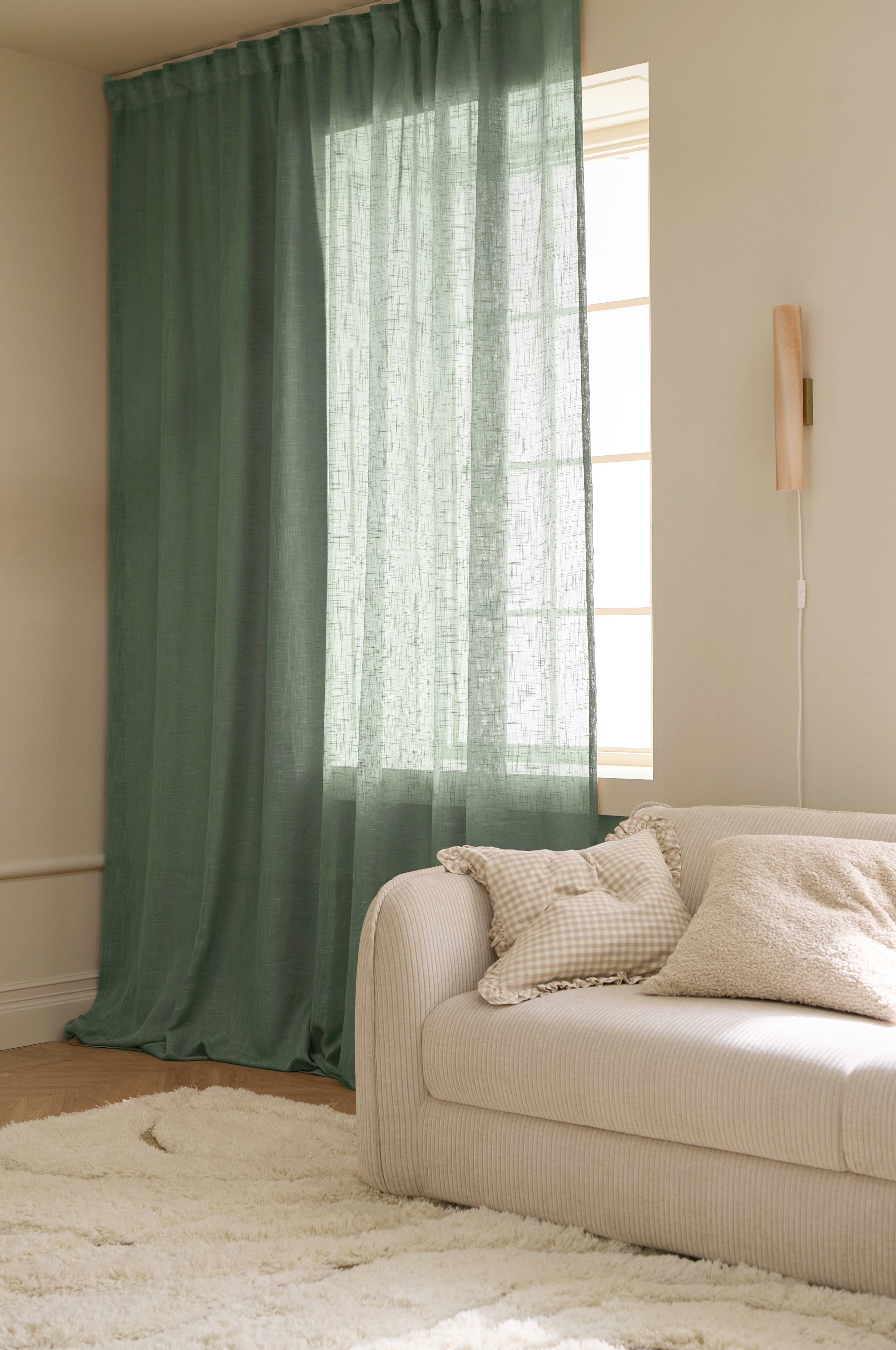 • Multibåndet giver dig mulighed for enten at hænge gardinet direkte på en gardinstang gennem de skjulte øjer eller bruge ringe, nålekroge eller fingerkroge. Snorene i plisseringsbåndet gør det nemt at lave jævne, fine plisseringer.