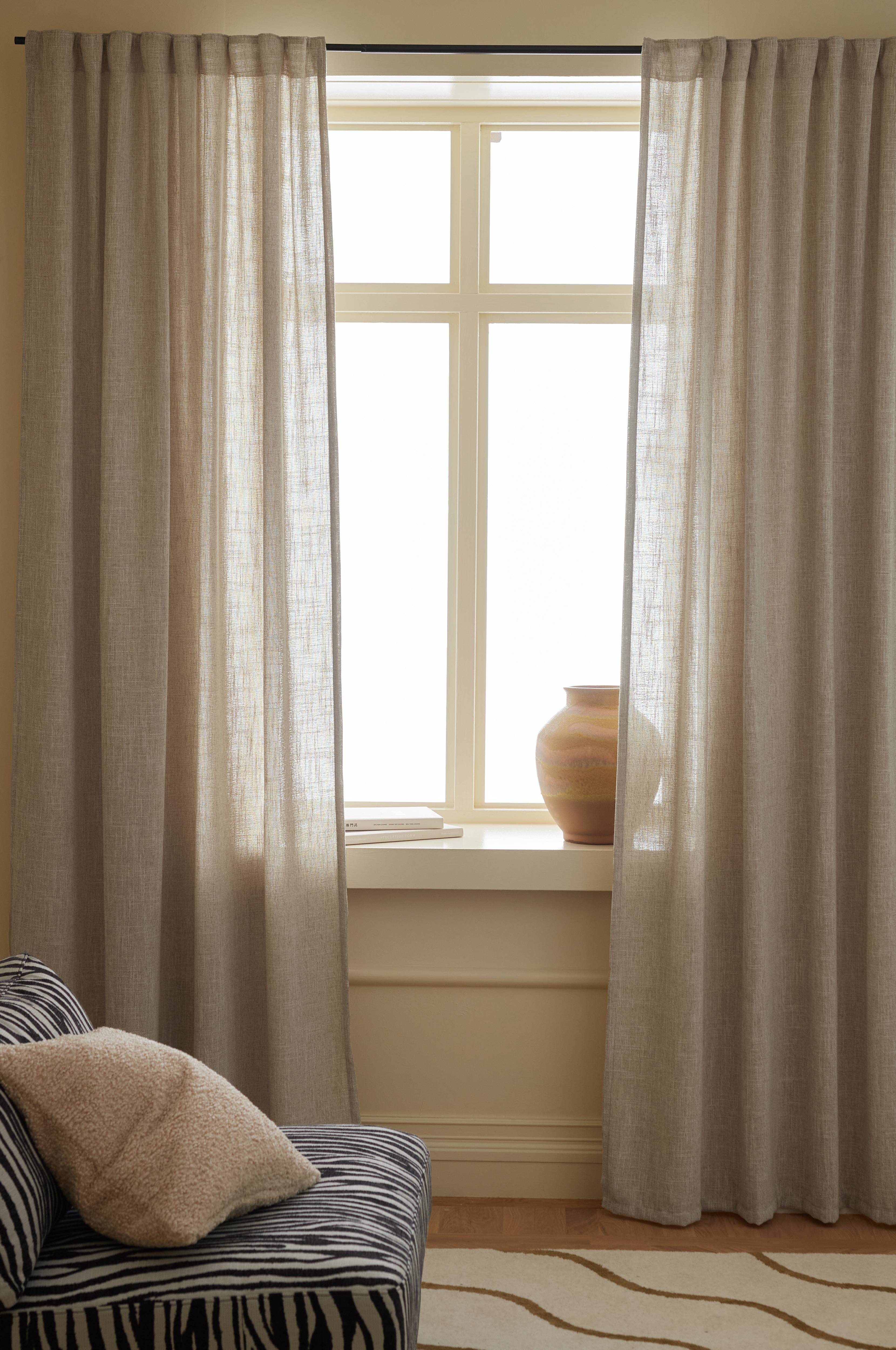 • Multibåndet gør, at du enten kan hænge gardinerne direkte på en gardinstang gennem de skjulte stropper eller anvende ringe, nålekroge eller fingerkroge. Snoren i rynkebåndet gør, at du let kan skabe ensartede, flotte læg.