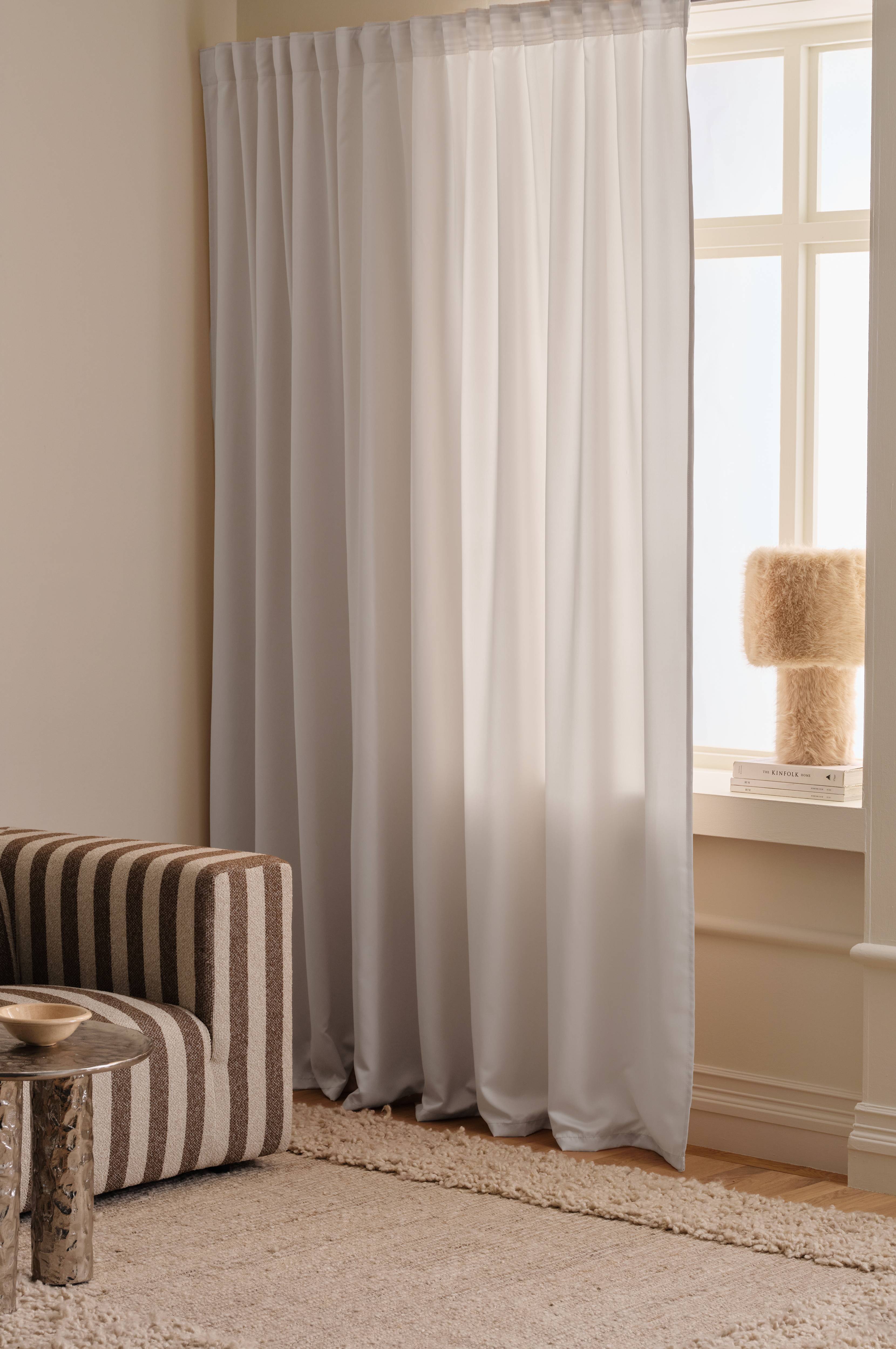 • En Multibåndsgardin i satin med let glans • Ekstra bred model • Multibåndet gør, at du enten kan hænge gardinerne direkte på en gardinstang gennem de skjulte stropper eller anvende ringe, nålekroge eller fingerkroge. Snoren i rynkebåndet gør, at du let kan skabe ensartede, flotte læg. • Sælges i 1-pak