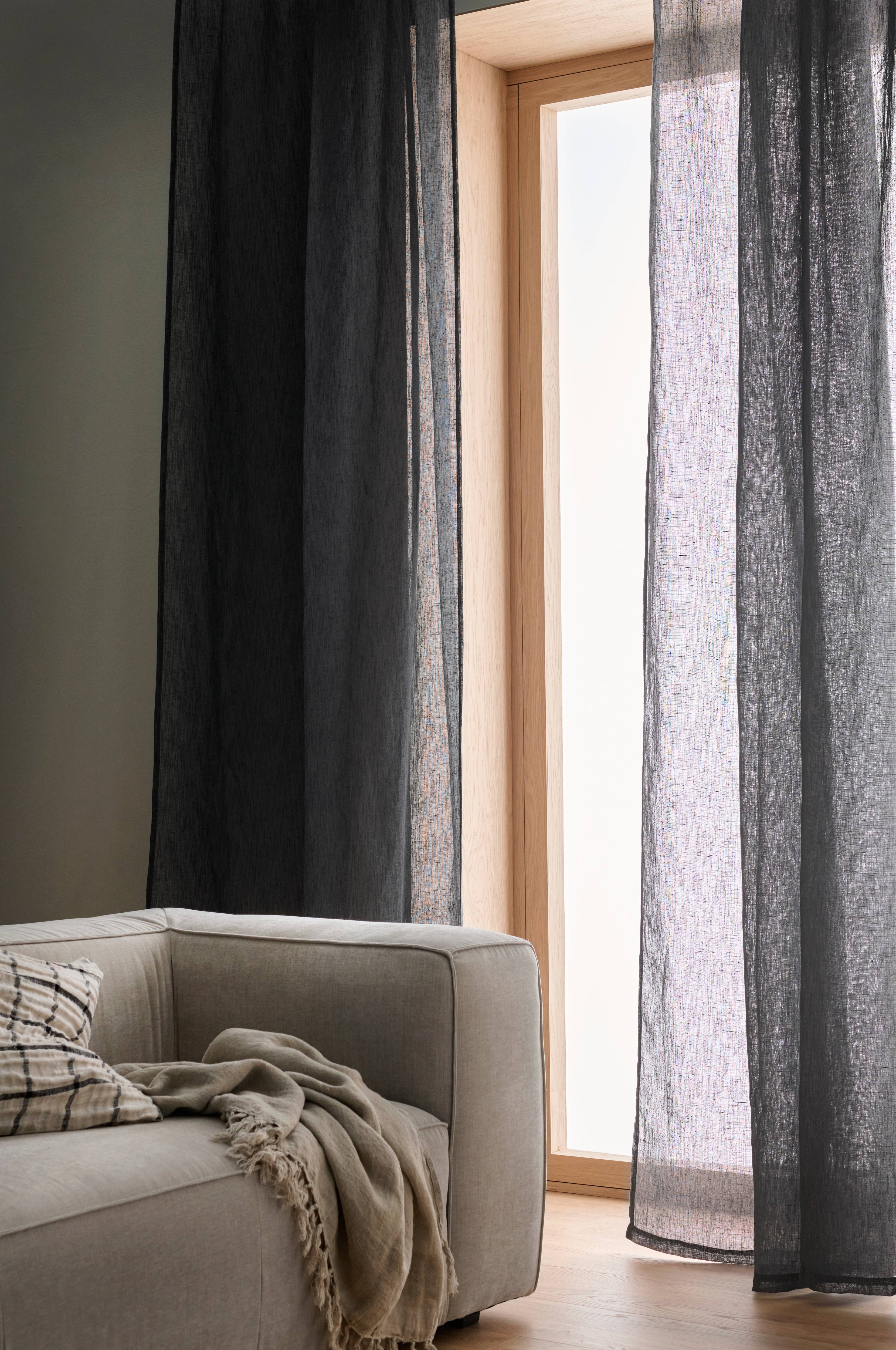 To multibåndslængder i en blanding af genindvundet polyester og hør. Løst vævet kvalitet med fin, levende hørstruktur. Multibåndet gør, at du enten kan hænge gardinerne direkte på en gardinstang gennem de skjulte stropper eller anvende ringe, nålekroge eller fingerkroge. Snore i rynkebåndet gør at du let kan skabe ensartede, flotte læg. Bredde 140 cm. Gardinerne findes i tre længder: 220, 250 og 300 cm.
