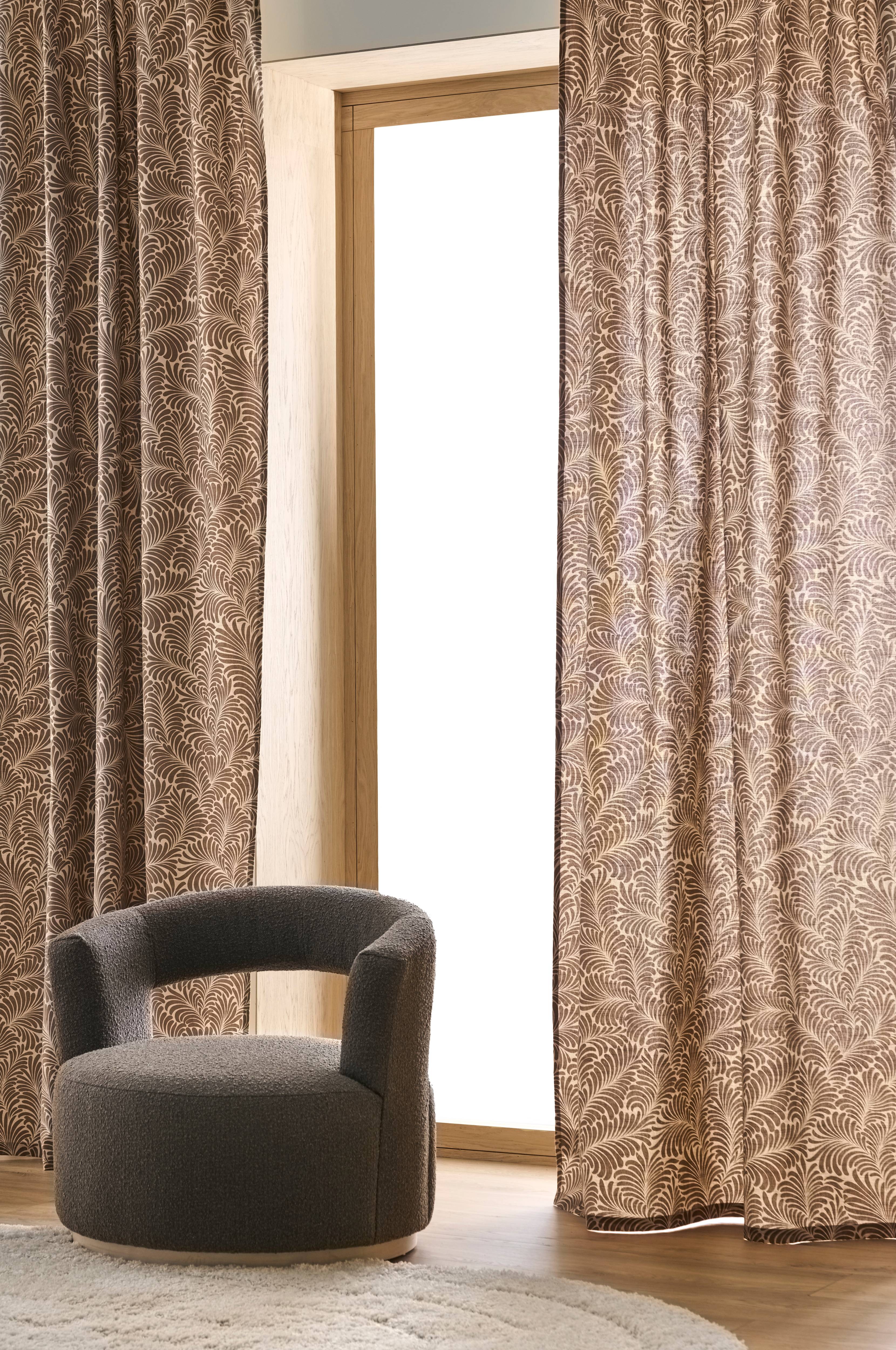 To multibåndslængder af bomuld med printet mønster og let slubeffekt i stoffet. Multibåndet gør, at du enten kan hænge gardinerne direkte på en gardinstang gennem de skjulte stropper eller anvende ringe, nålekroge eller fingerkroge. Snore i rynkebåndet gør at du let kan skabe ensartede, flotte læg. Bredde 145 cm. Tre længder: 220, 250 og 300 cm.