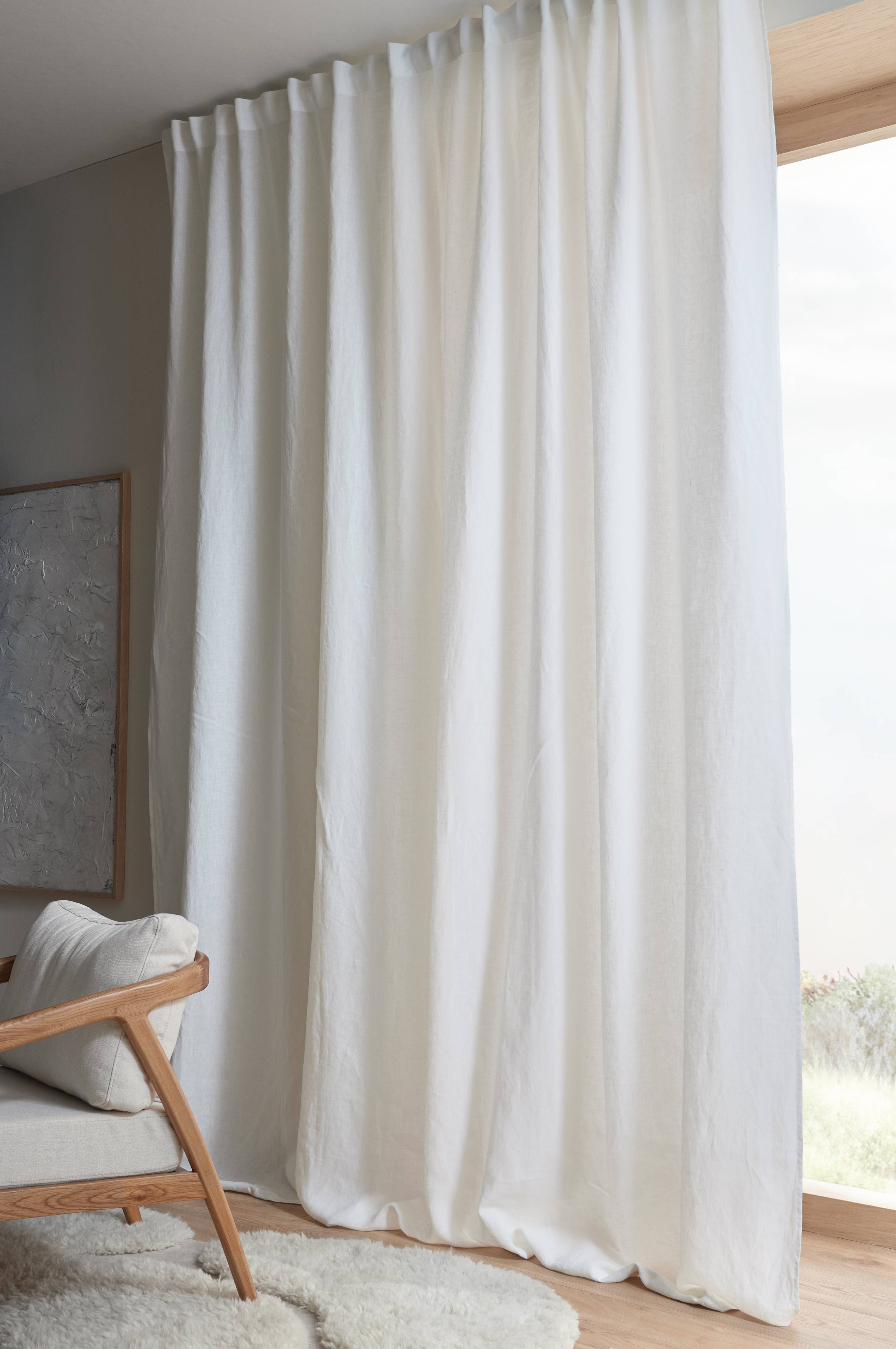 En ekstra bred multibåndslængde i vasket hør med smuk struktur. Multibåndet gør, at du enten kan hænge gardinet direkte på en gardinstang gennem de skjulte stropper eller anvende ringe, nålekroge eller fingerkroge. Snoren i rynkebåndet gør, at du let kan skabe ensartede, flotte læg. Kan også bruges med rynkebåndskrog. Bredde: 270 cm. Længde: 300 cm.