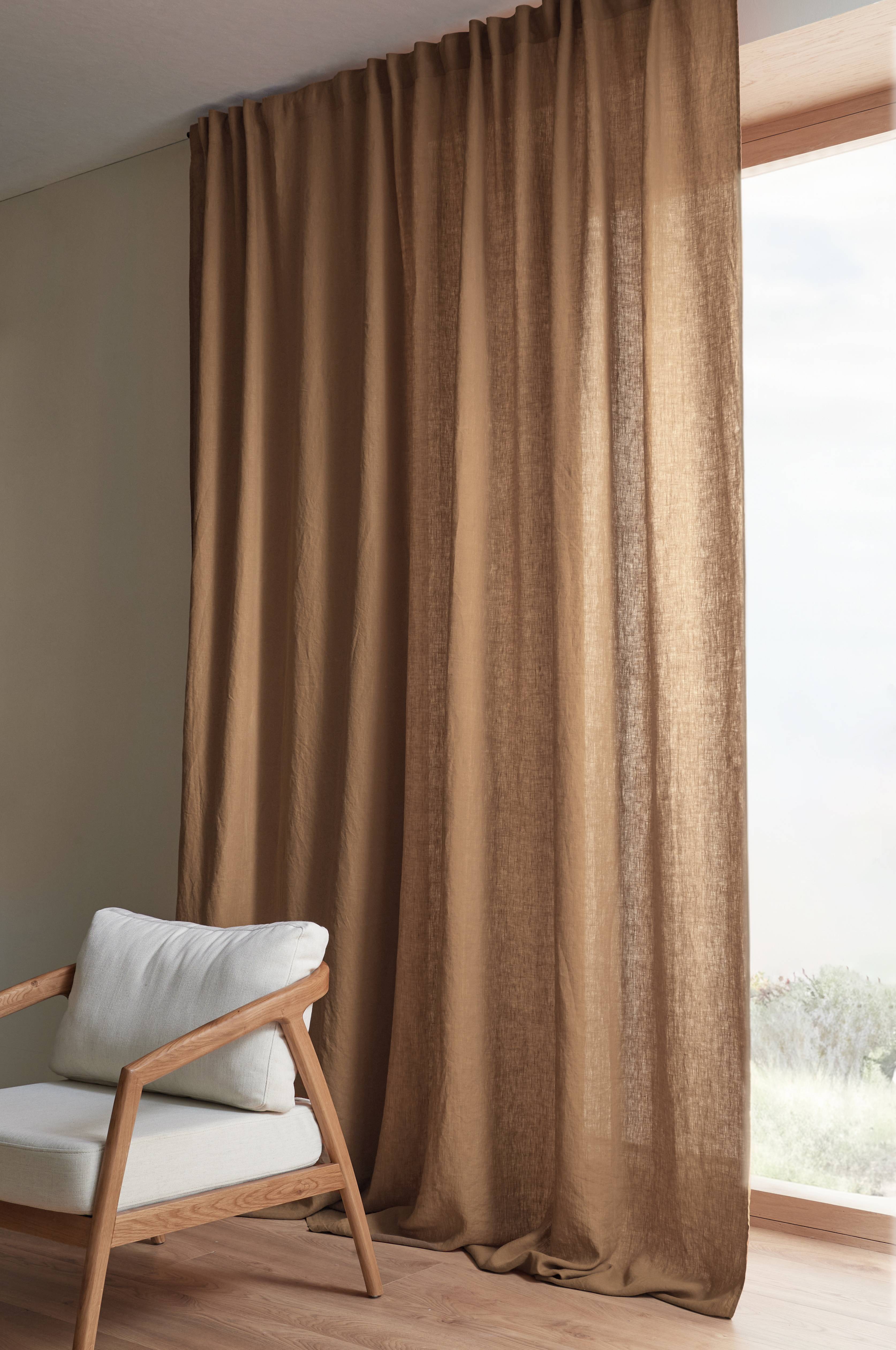 En ekstra bred multibåndslængde i vasket hør med smuk struktur. Multibåndet gør, at du enten kan hænge gardinet direkte på en gardinstang gennem de skjulte stropper eller anvende ringe, nålekroge eller fingerkroge. Snoren i rynkebåndet gør, at du let kan skabe ensartede, flotte læg. Kan også bruges med rynkebåndskrog. Bredde: 270 cm. Længde: 300 cm.