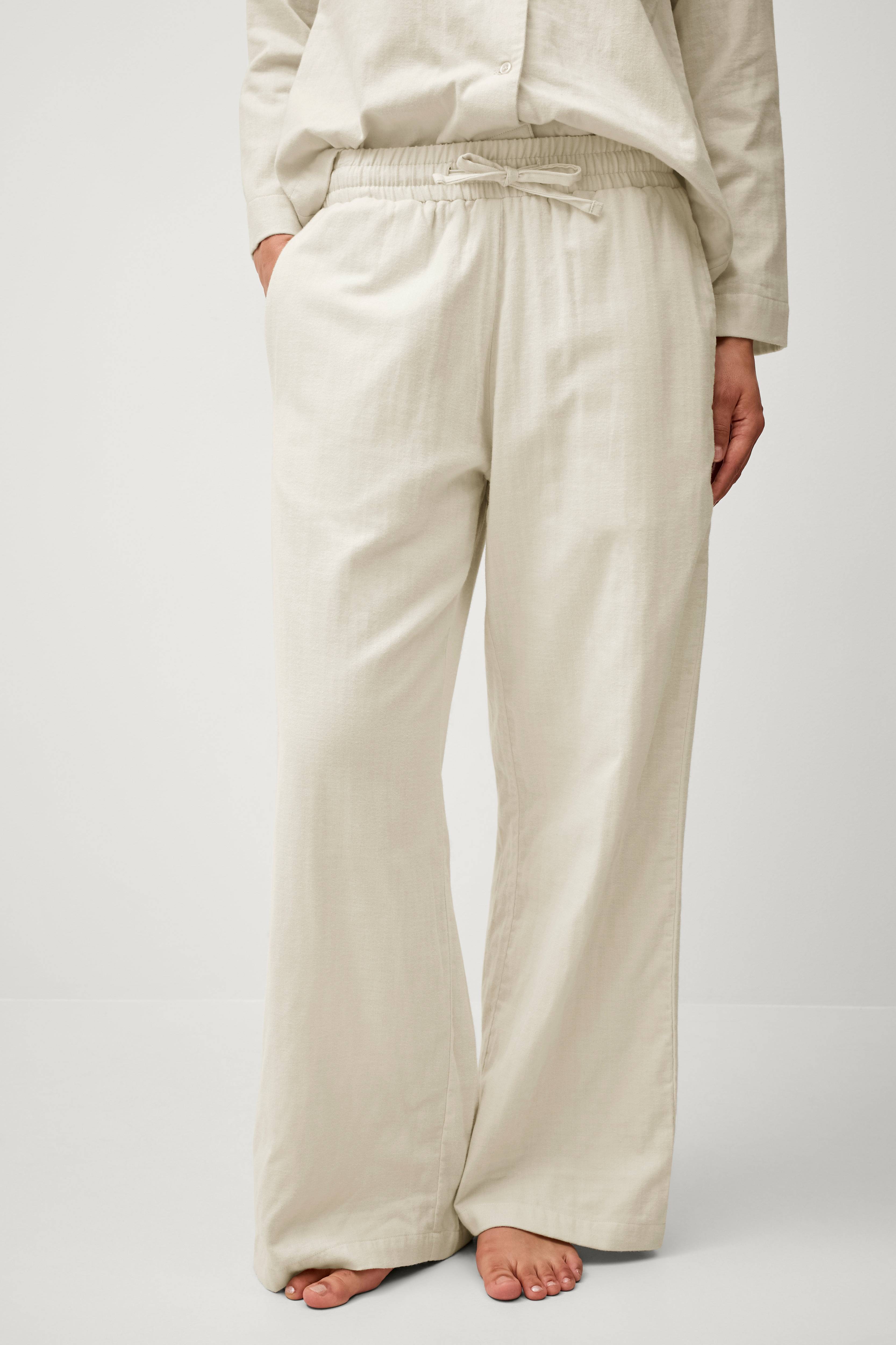 • Natbukser i blød, børstet bomuldsmuslin