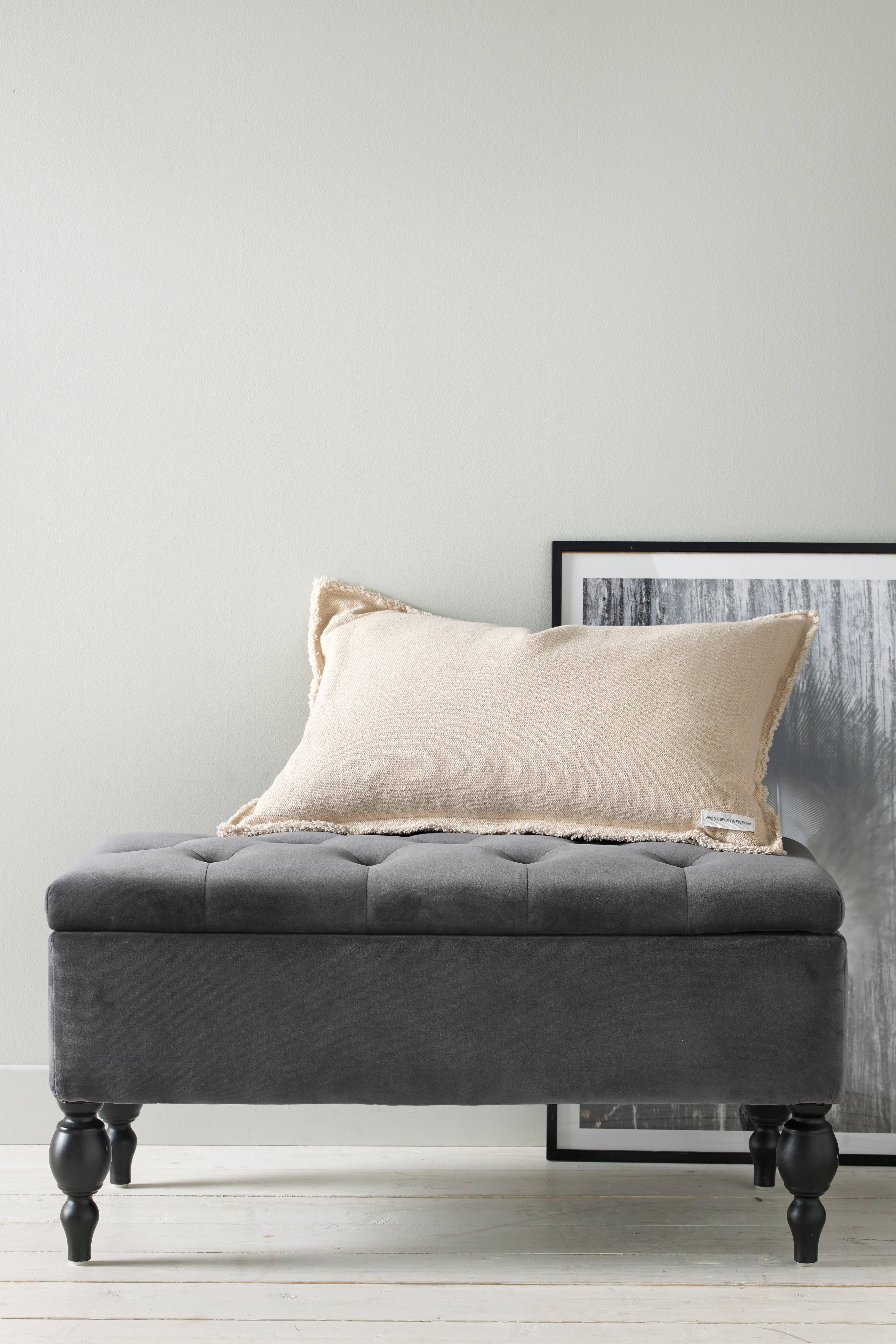 Opbevaringsbænk med betræk i polyestervelour. Stel af fyrretræ og plywood. Ben i gummitræ. Polstring af polyether. Opbevaringsrum i bænken, klap, der kan vippes op med hængsel og gasfjedre, der gør, at klappen åbnes og lukkes blidt og dæmpet uden klemmerisiko. Bredde 80 cm, dybde 40 cm, højde 40 cm. Mål indvendigt: 30x70 cm. Frihøjde 16 cm. Maks. belastning 130 kg. Lev. samlet. Produktet indeholder FSC-certificeret træ, som er fældet i et ansvarsfuldt skovbrug, der tager hensyn til mennesker og miljø.