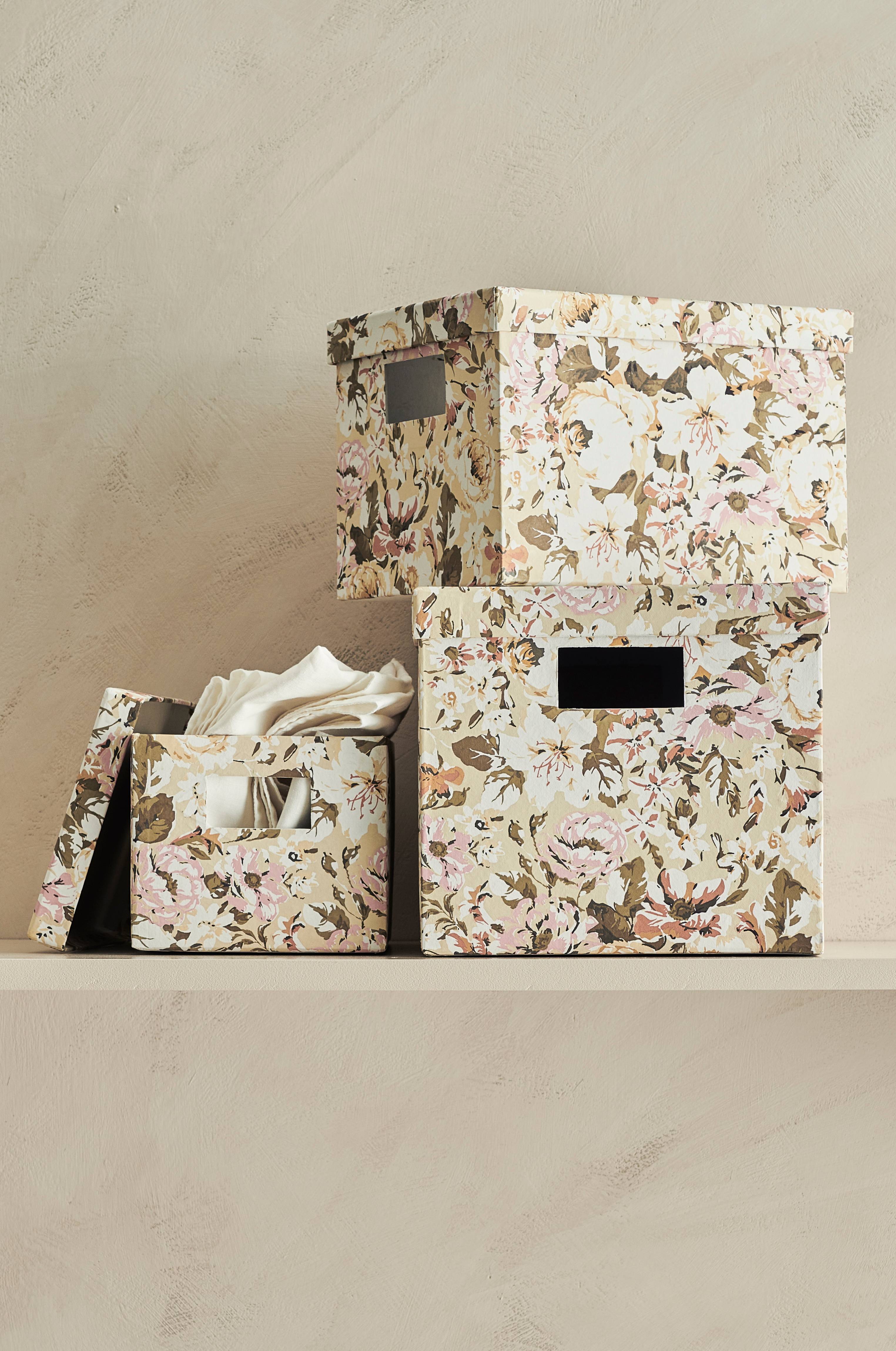 3 stk. opbevaringsbokse i forskellige størrelser med låg. Af genindvundet, håndlavet papir/karton.Boks 1: B 35,5 x H 25,5 x D 28 cm.Boks 2: B 30,5 x H 20,5 x D 23 cm.Boks 3: B 25,5 x H 15 x D 18 cm.
