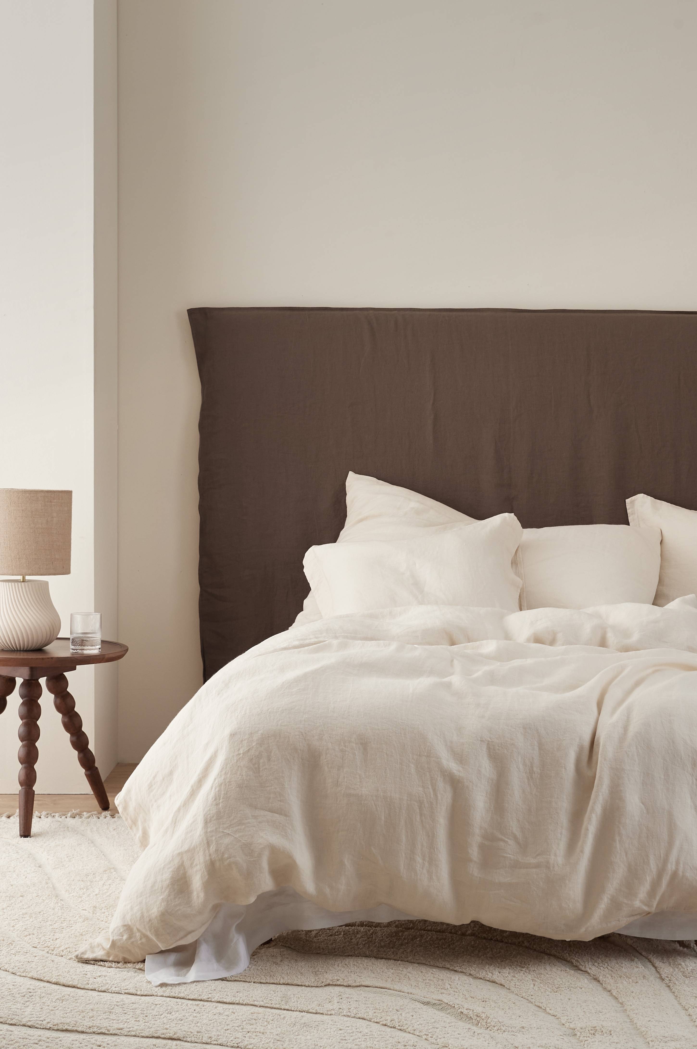 Et betræk i hør, som du trækker over din sengegavl. Betrækket har løs pasform, afhængigt af hvor dyb din sengegavl er, og sengen får et afslappet udtryk. Dobbelte denimsømme på 3 sider. Betrækket er i en blød og behagelig vasket hørkvalitet fra Frankrig.