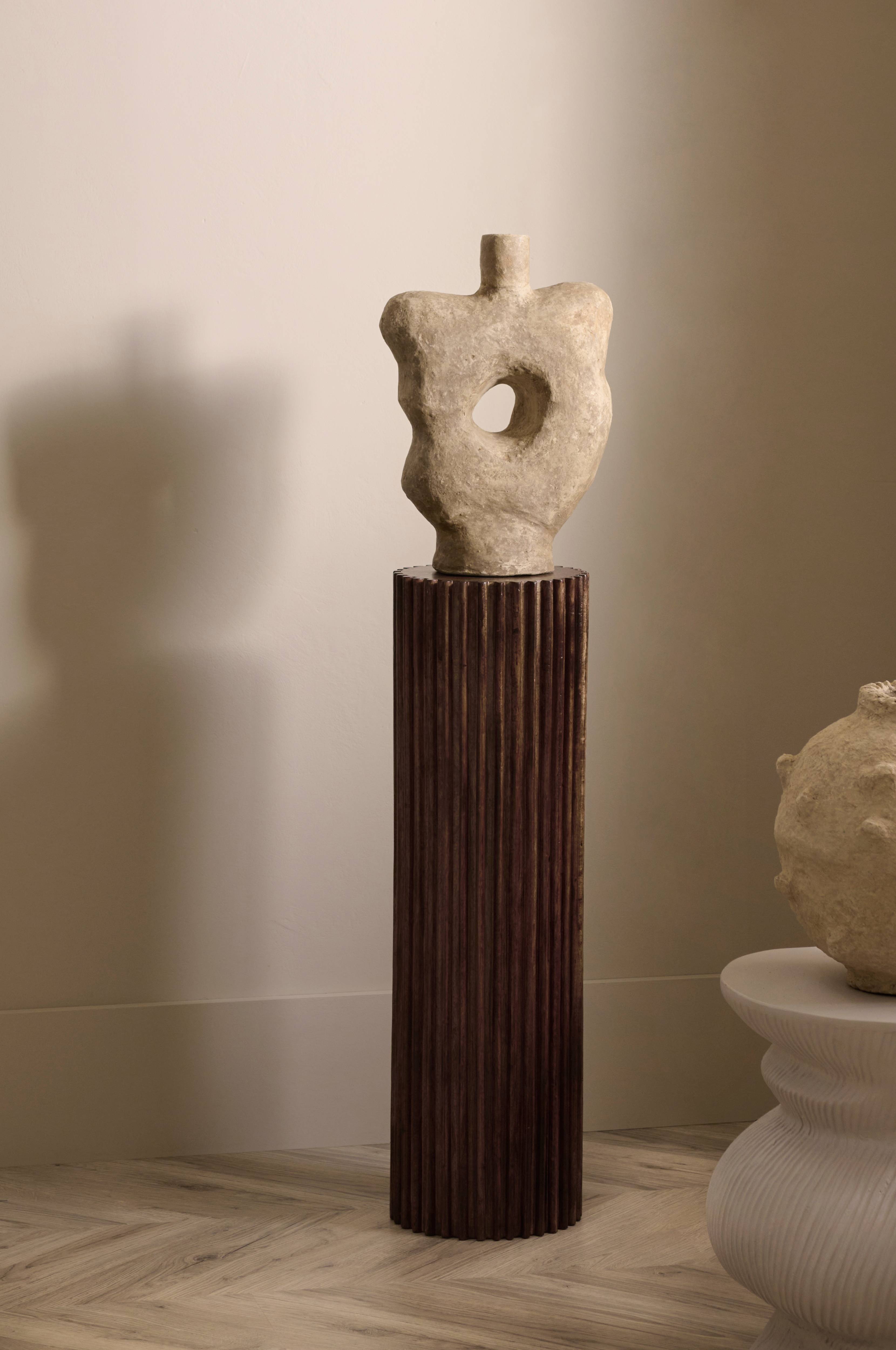 Piedestal i mangotræ med vokset overflade. Riflet struktur på siden. Leveres samlet.