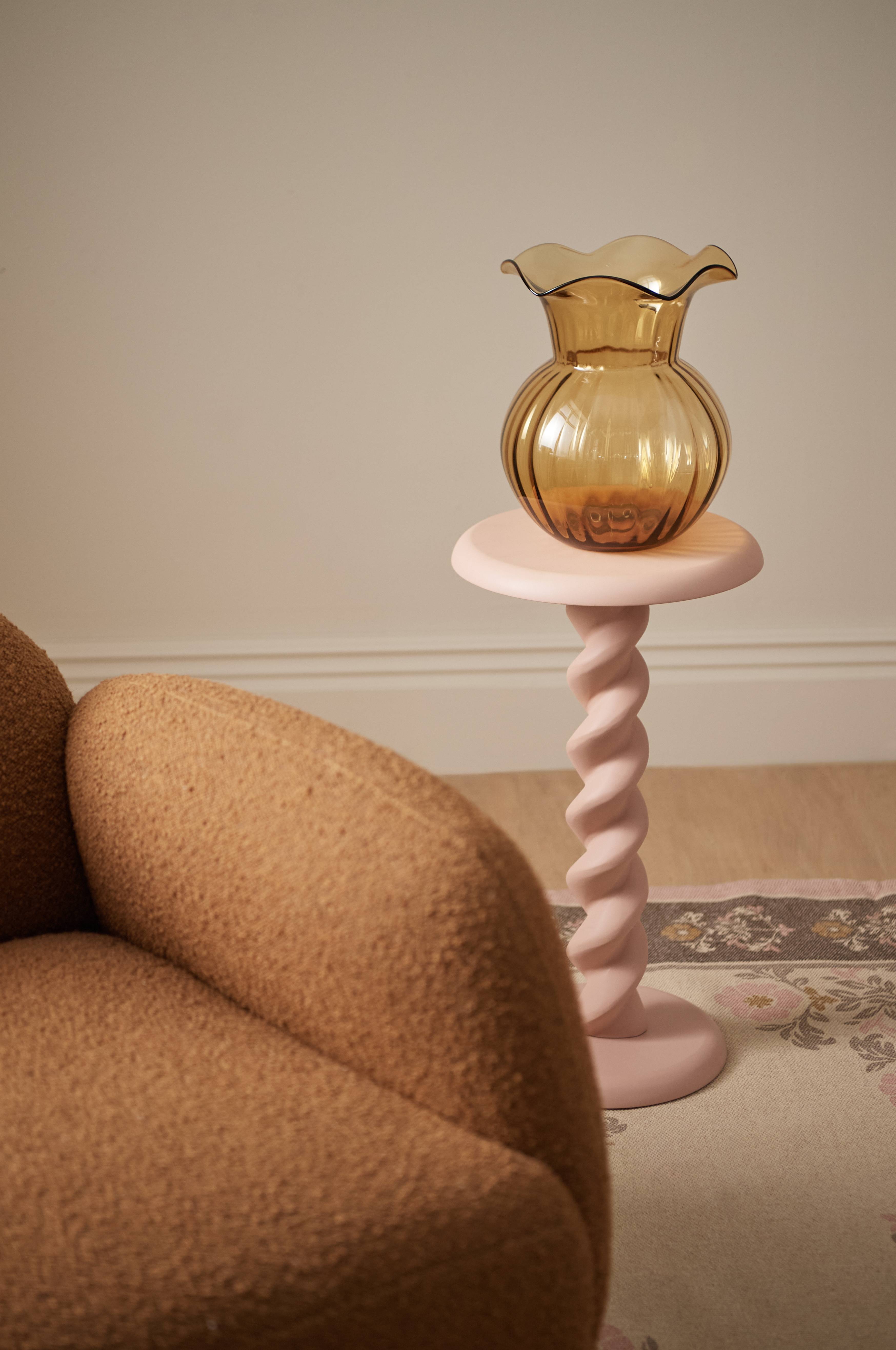 Piedestal eller sengebord i malet, mat mangotræ. Midtersøjle med snoet design. Produktet er certificeret af Forest Stewardship Council (FSC), hvilket betyder, at det indeholder træ, der er fældet ved ansvarlig skovdrift, som tager hensyn til mennesker og miljø.