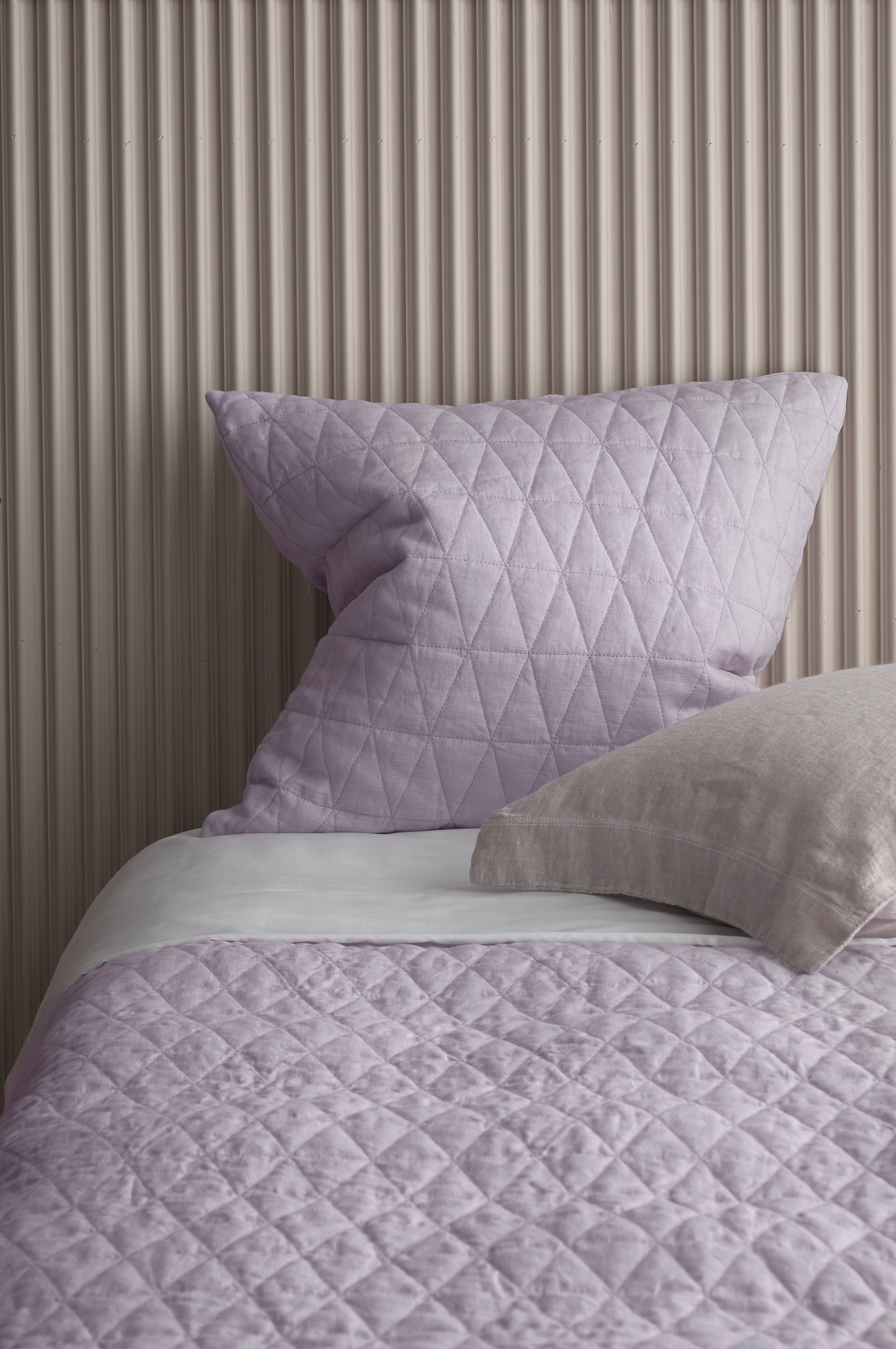 Pudebetræk i vasket hør med quiltet grafisk mønster. Lynlås. Str. 60x60 cm.