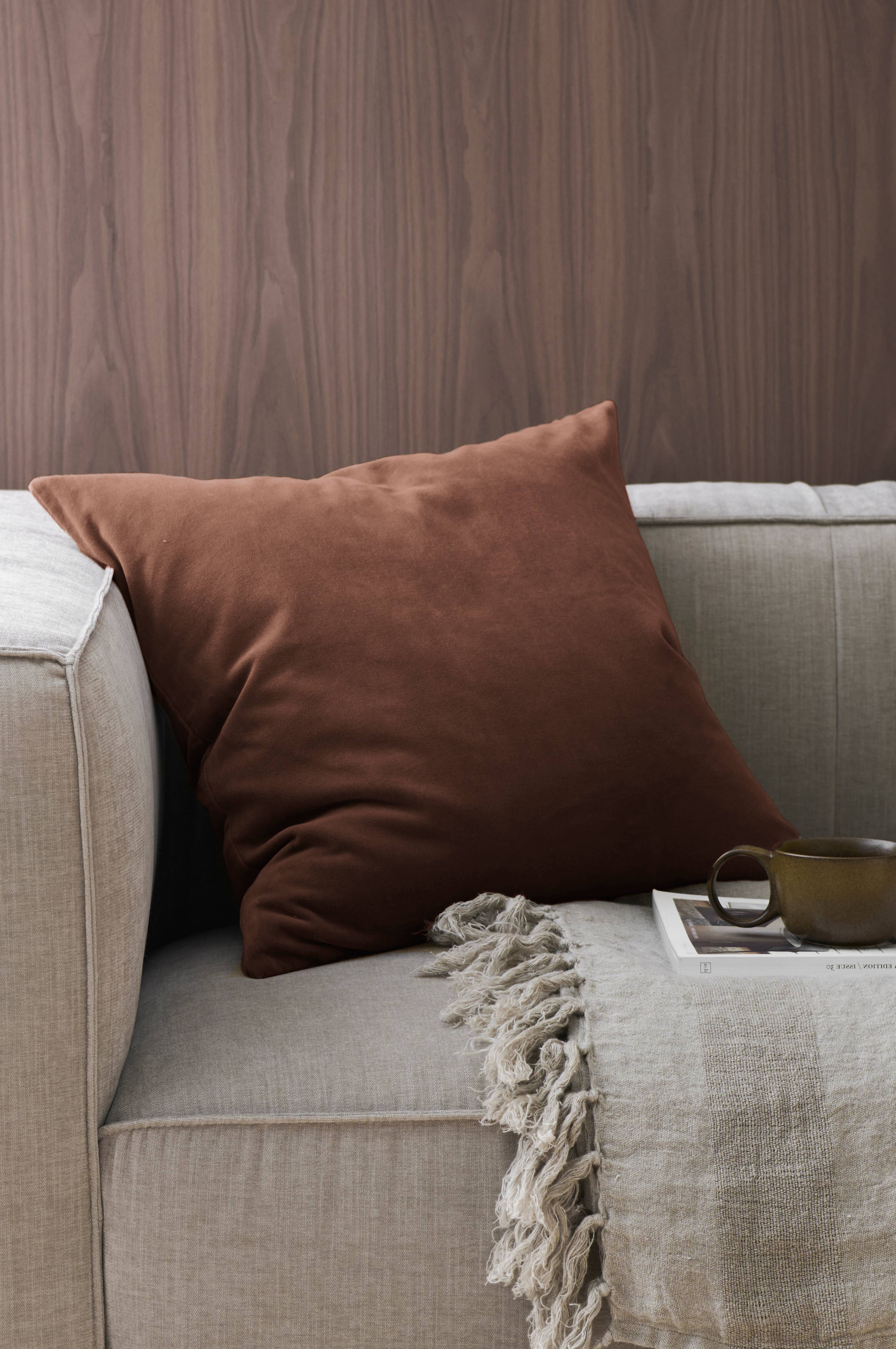 Ensfarvet pudebetræk i velour af bomuld. Lynlås i bunden. Str. 50x50 cm.