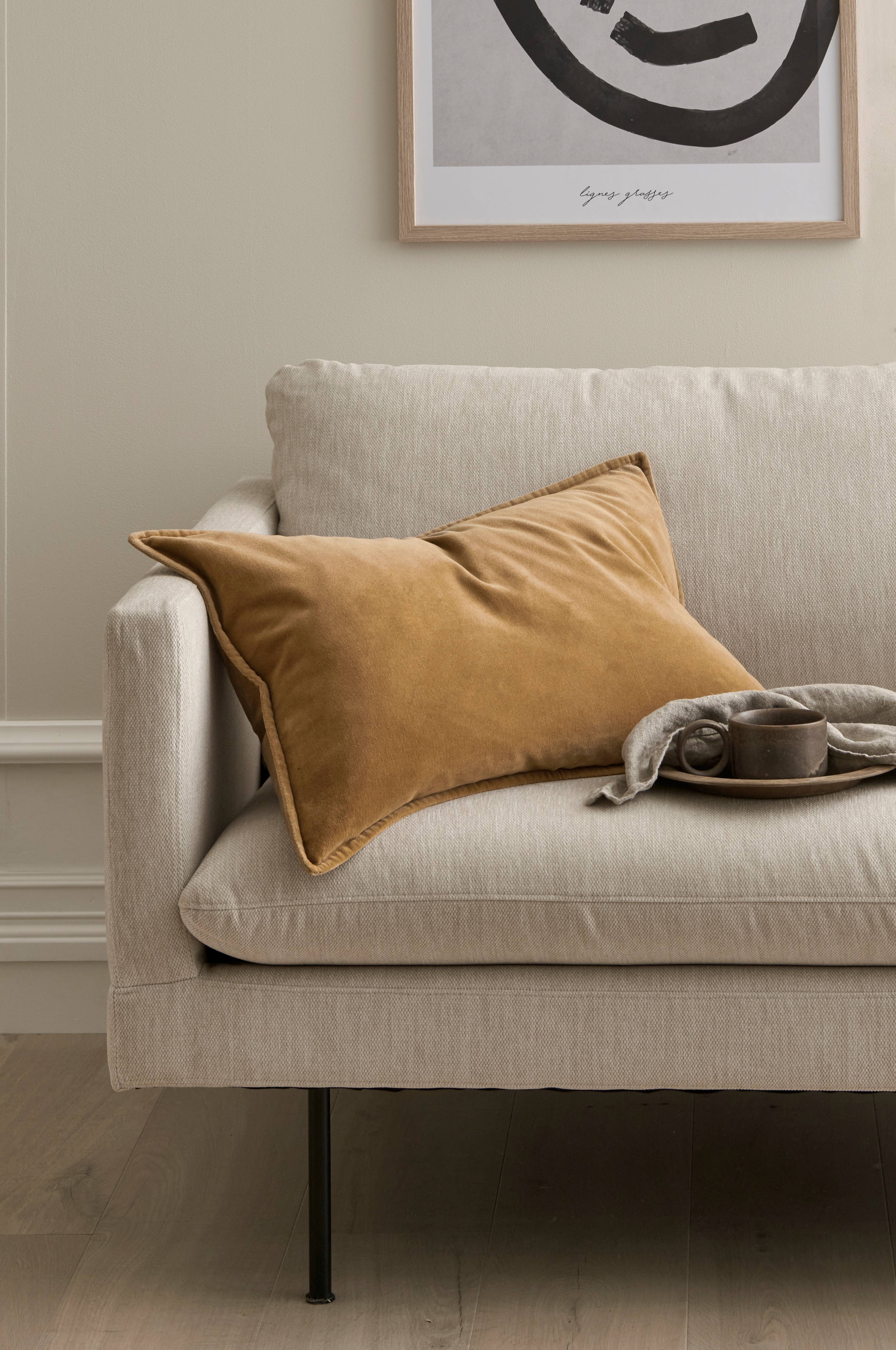 Pudebetræk i velour af bomuld med pyntesøm rundt om. Lynlås i bunden på bagsiden. Str. 40x60 cm.