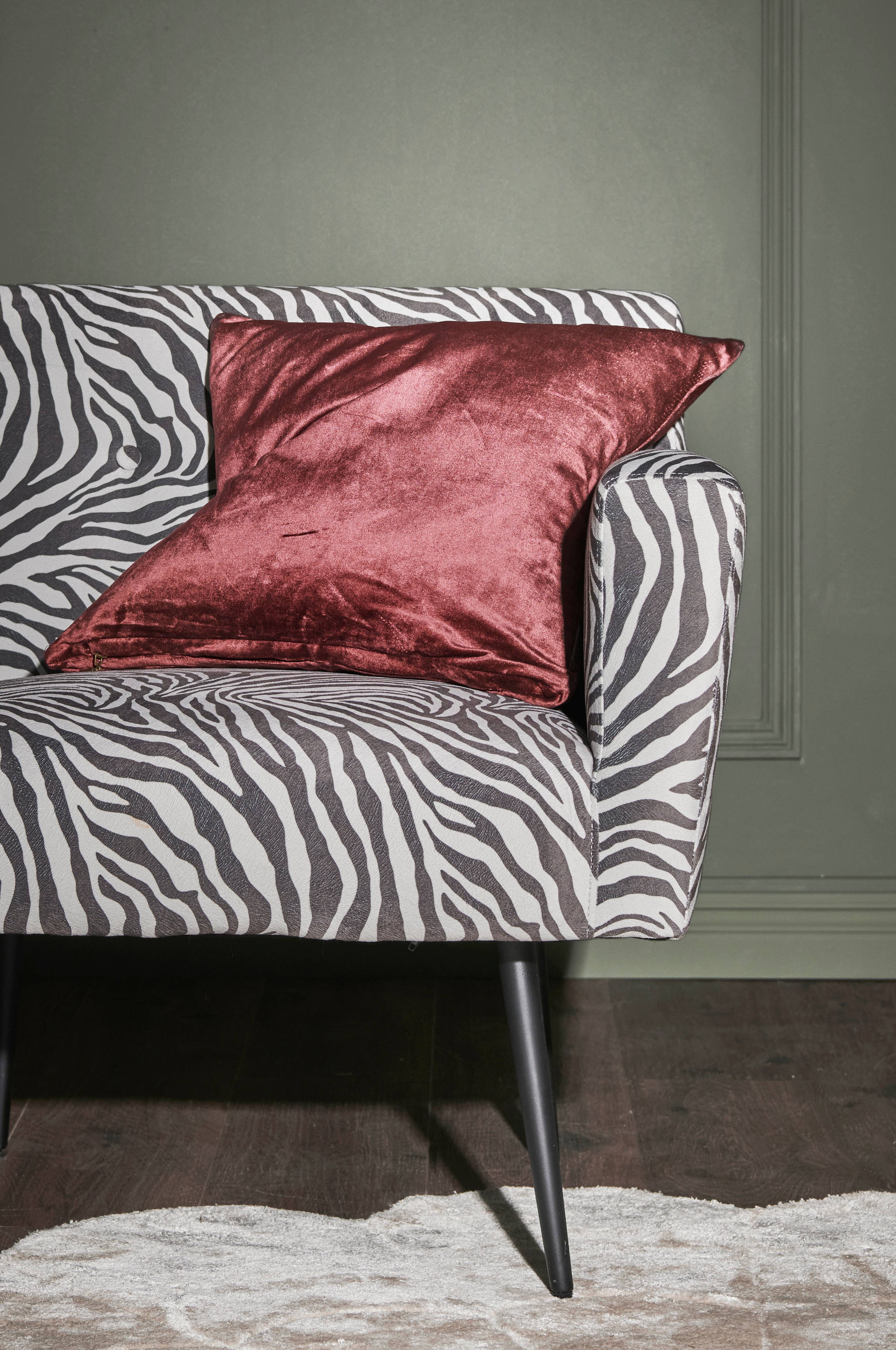 Pudebetræk i blød, vasket velour af viskose. Metallynlås i bunden i antikguldfarvet. Str. 50x50 cm.