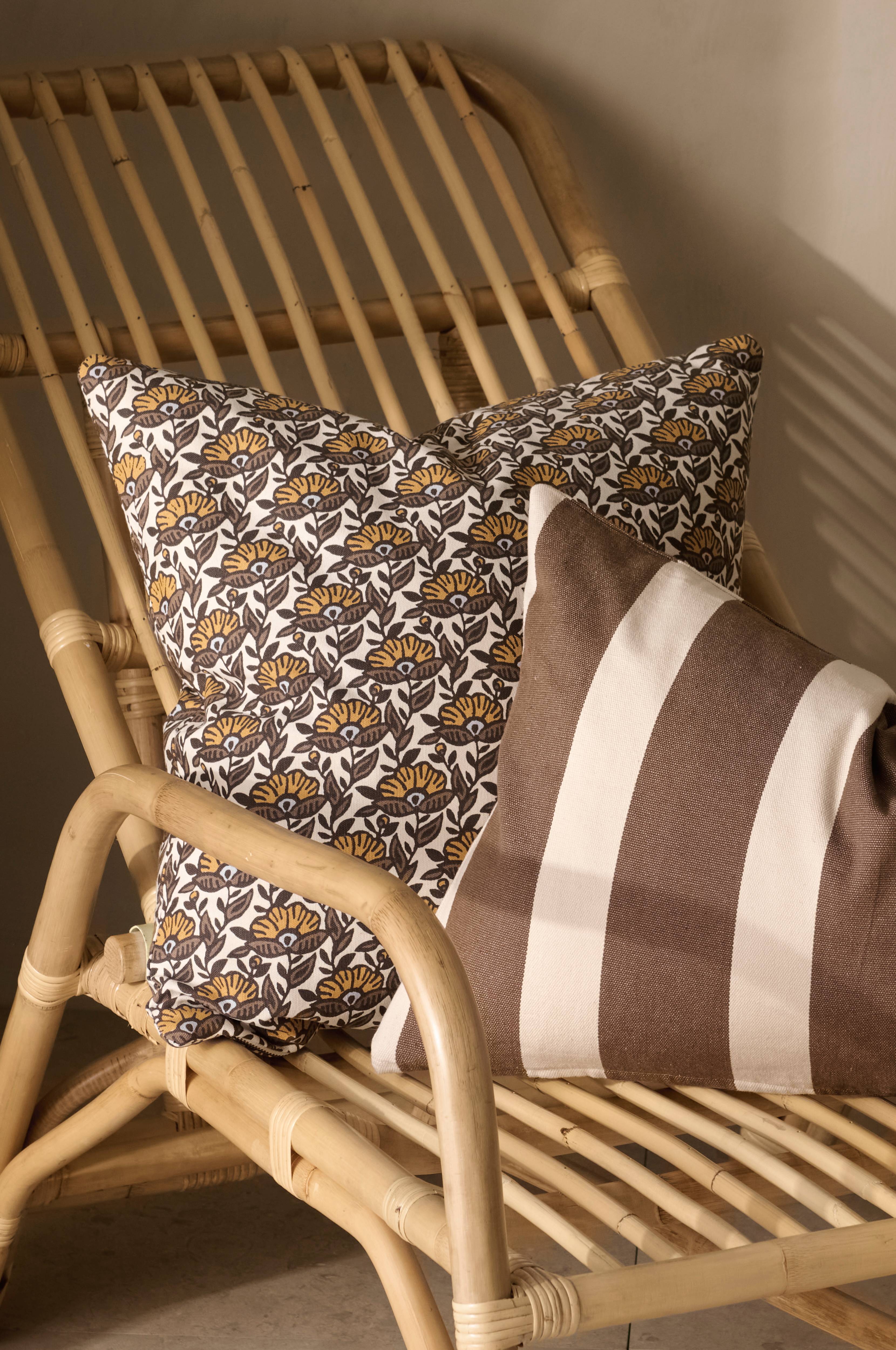 Pudebetræk i lidt kraftigere halvpanama af bomuld med printet mønster på begge sider. Metallynlås i bunden.