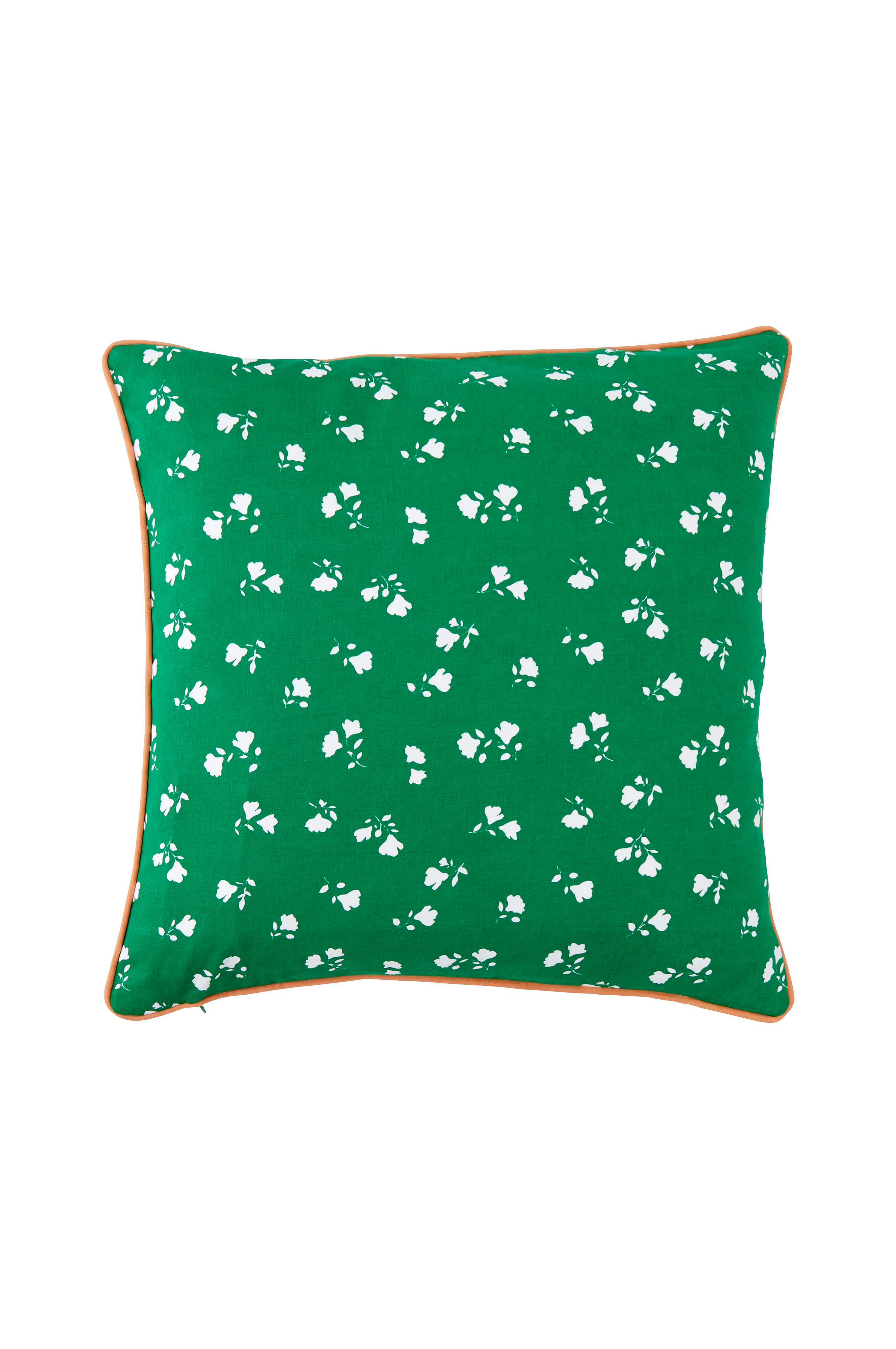Pudebetræk af bomuldssatin med glat overflade og printet mønster på for- og bagside. Paspoleret kant rundt om og lynlås i bunden. Str. 50x50 cm.