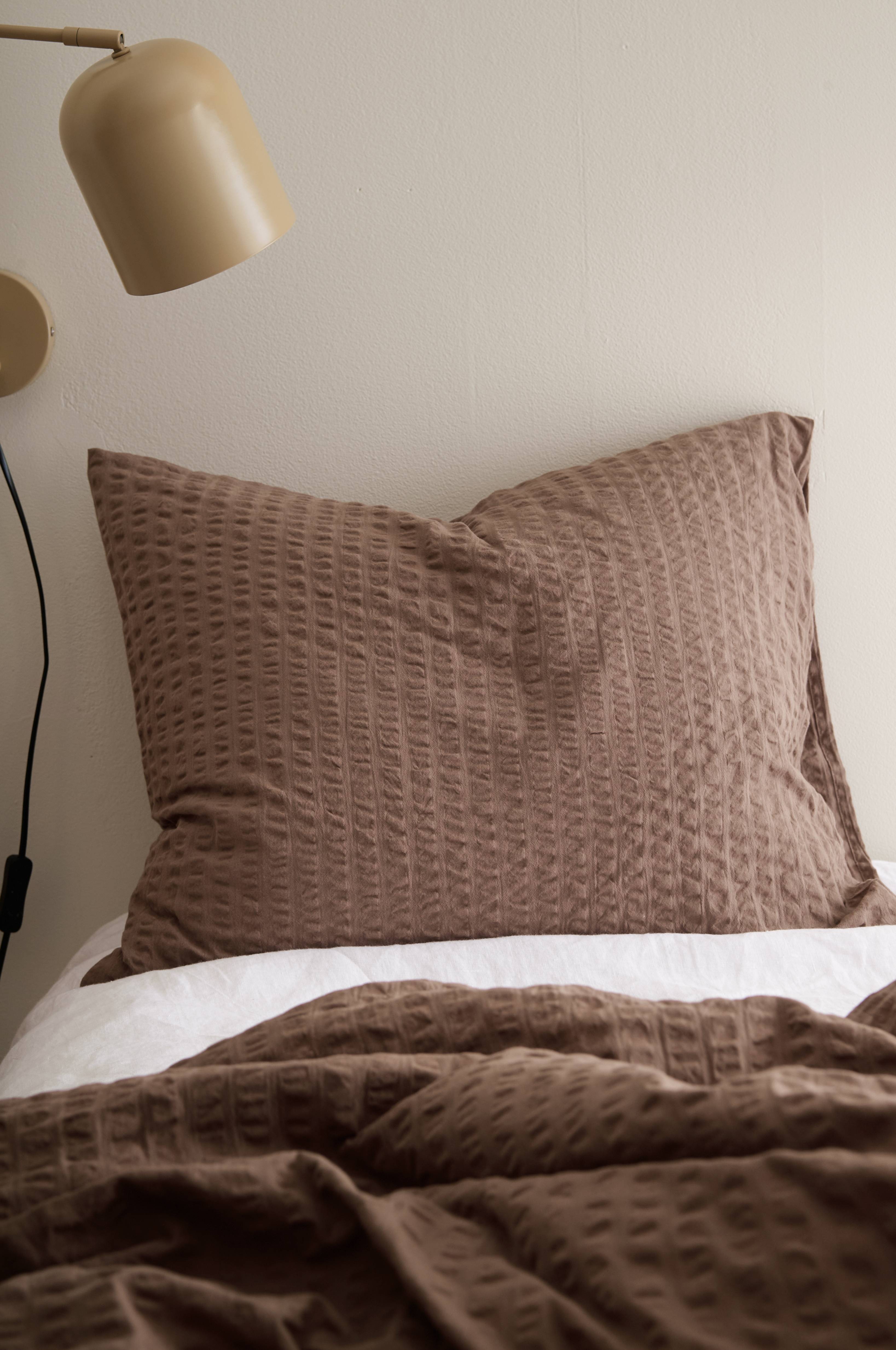 Pudebetræk i bæk og bølge (seersucker) af kæmmet, økologisk bomuld. Leveres i stofpose i samme kvalitet. Str. 50x60 cm.