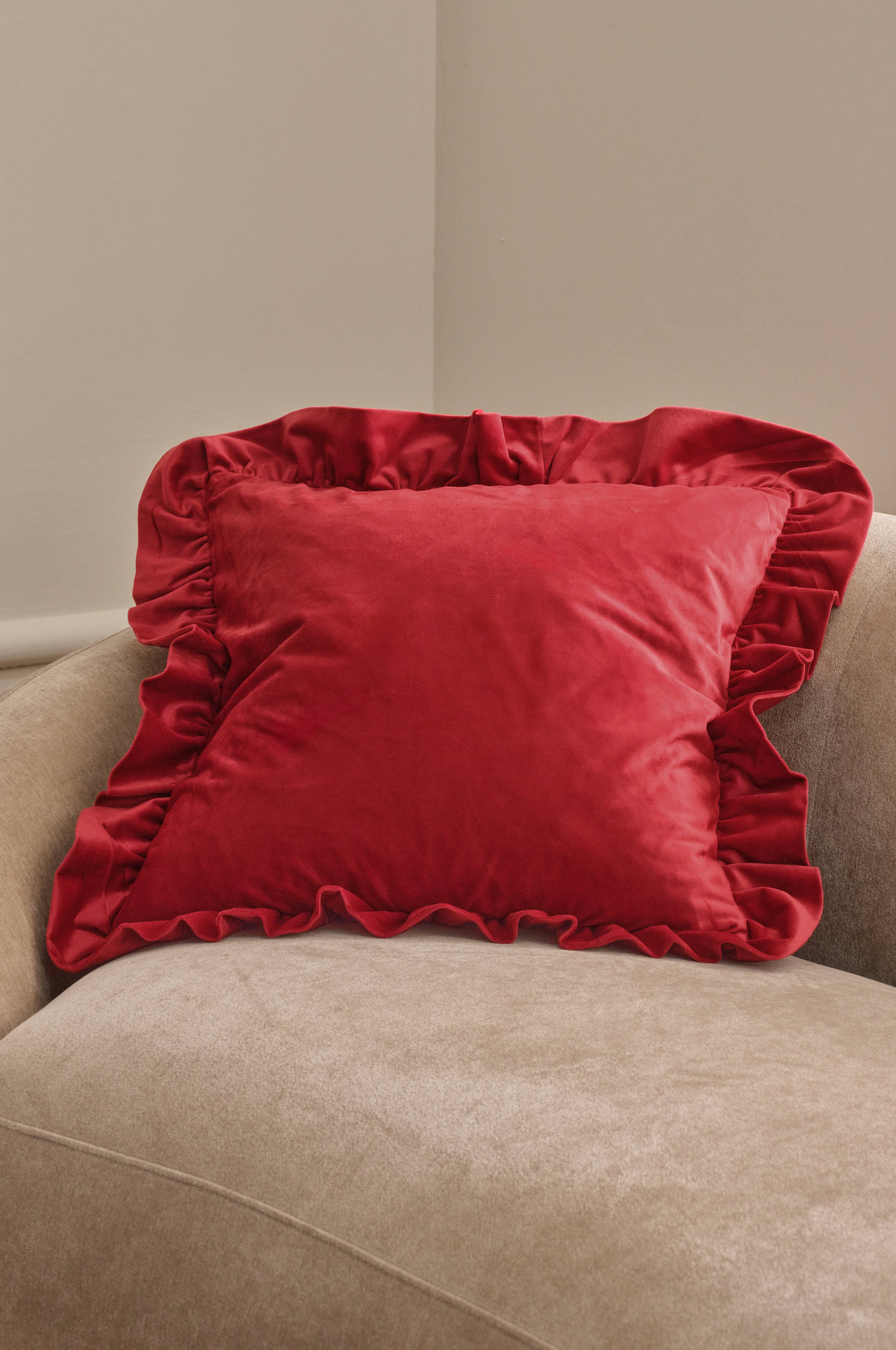 • Pudebetræk i fløjl med dejlig glans• Volant hele vejen rundt• Lynlås i bunden