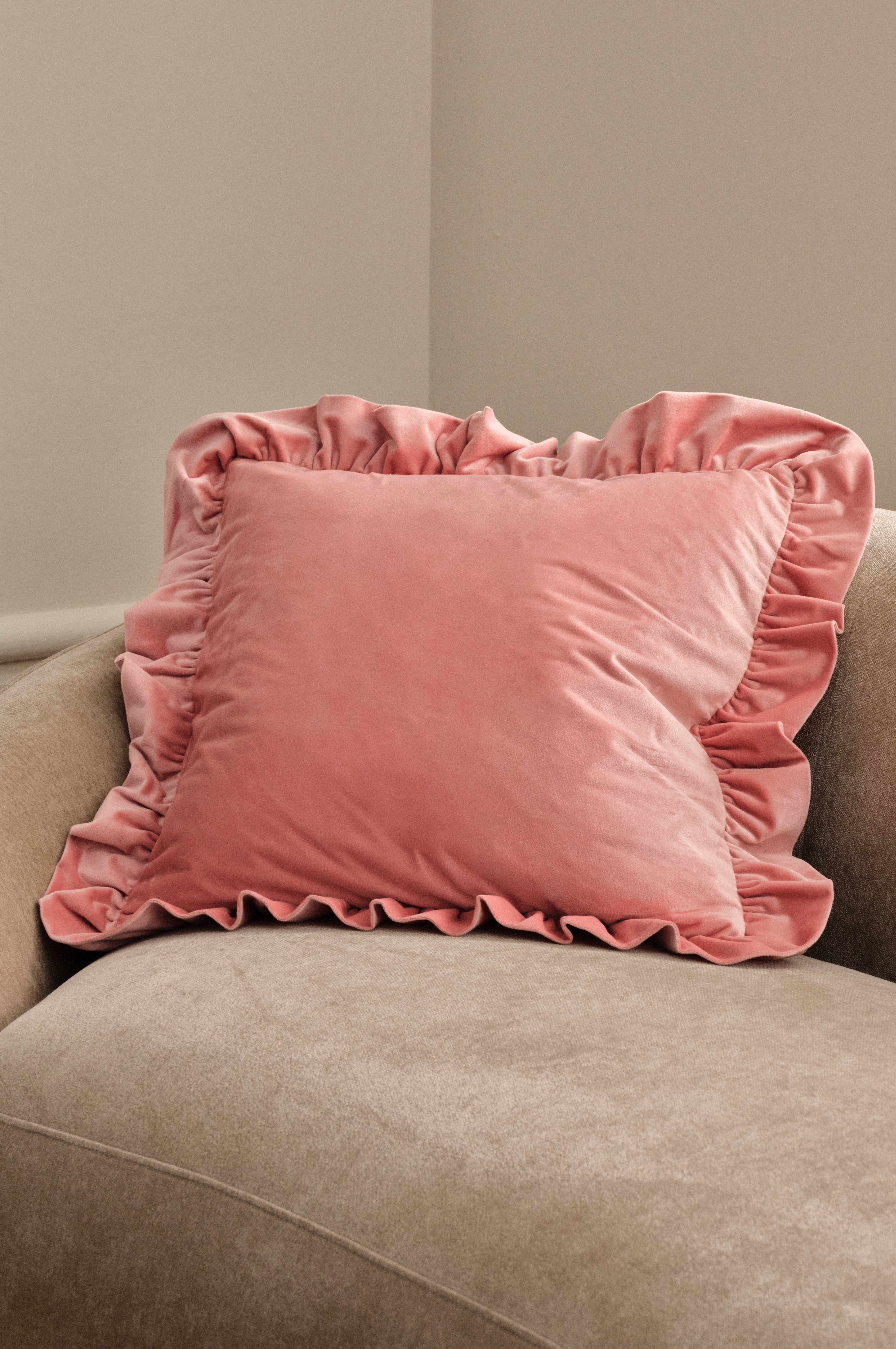 • Pudebetræk i fløjl med dejlig glans• Volant hele vejen rundt• Lynlås i bunden