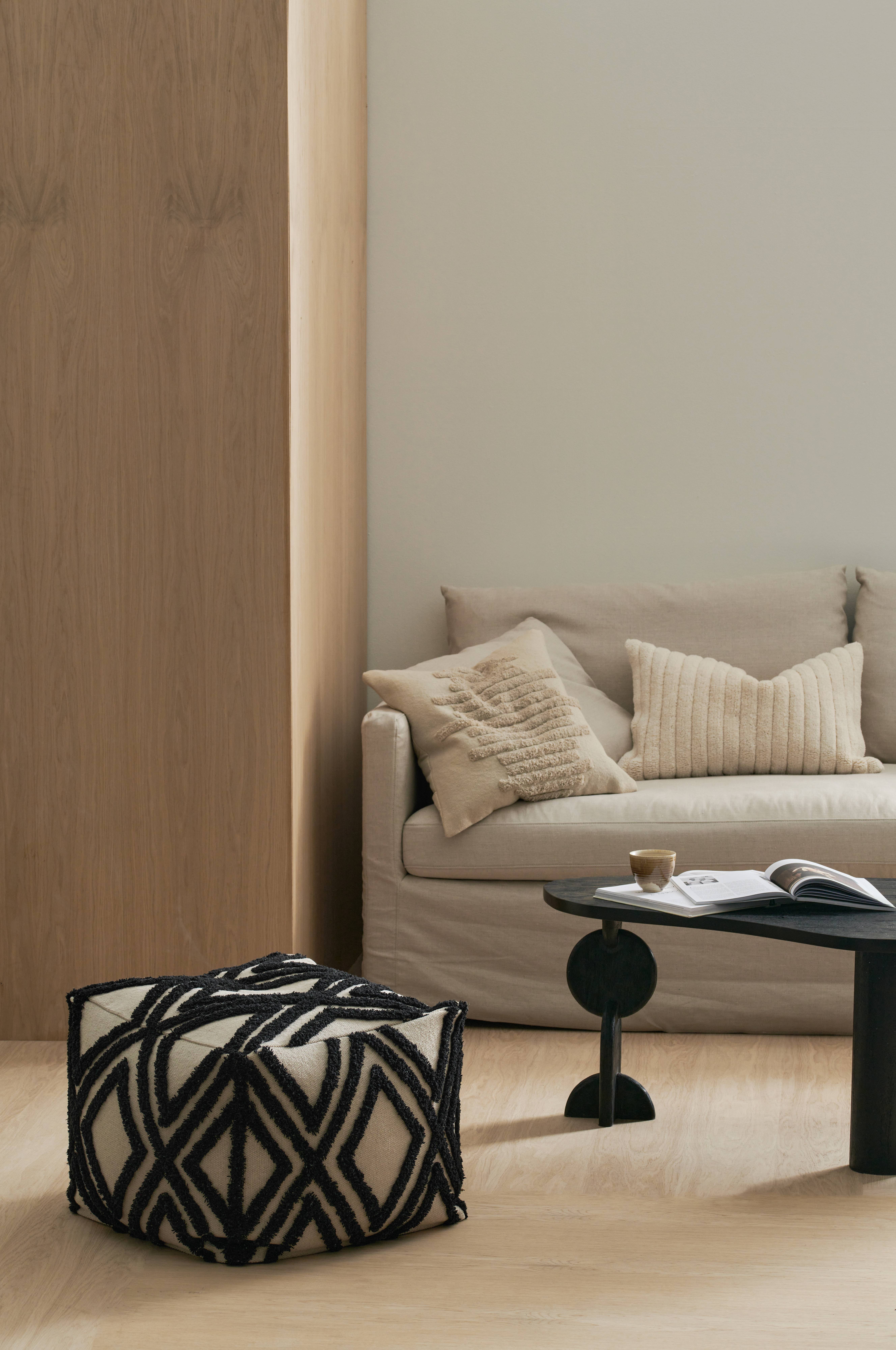 Puf med betræk i 100% bomuld med tuftet mønster. Betrækket er aftageligt og kan håndvaskes (ikke maskinvask). Fyld af plastkugler (thermocol).