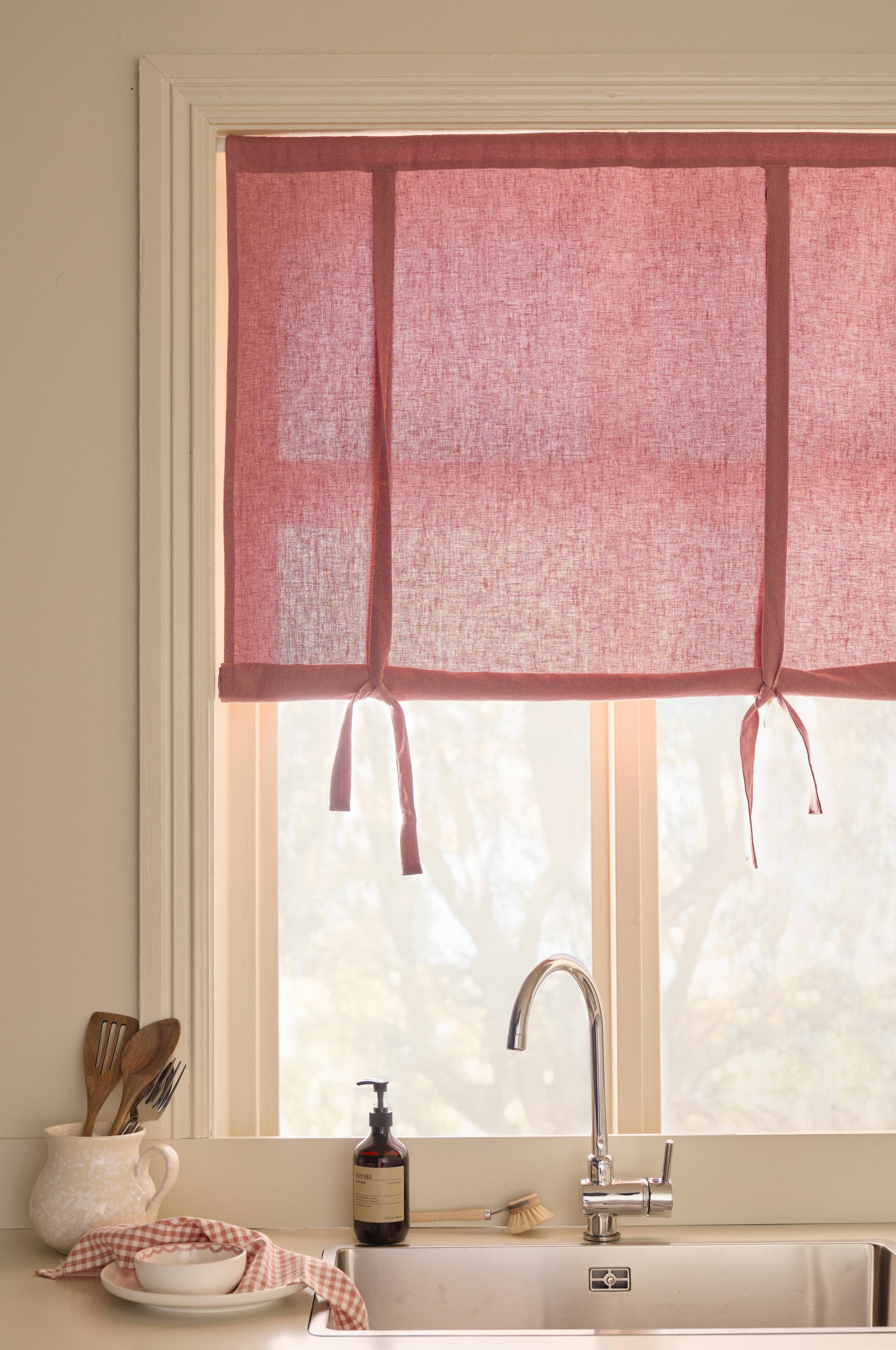 • Hvis du vil have en lige kant, skal du rulle gardinet rundt om en træpind (træpind medfølger ikke).