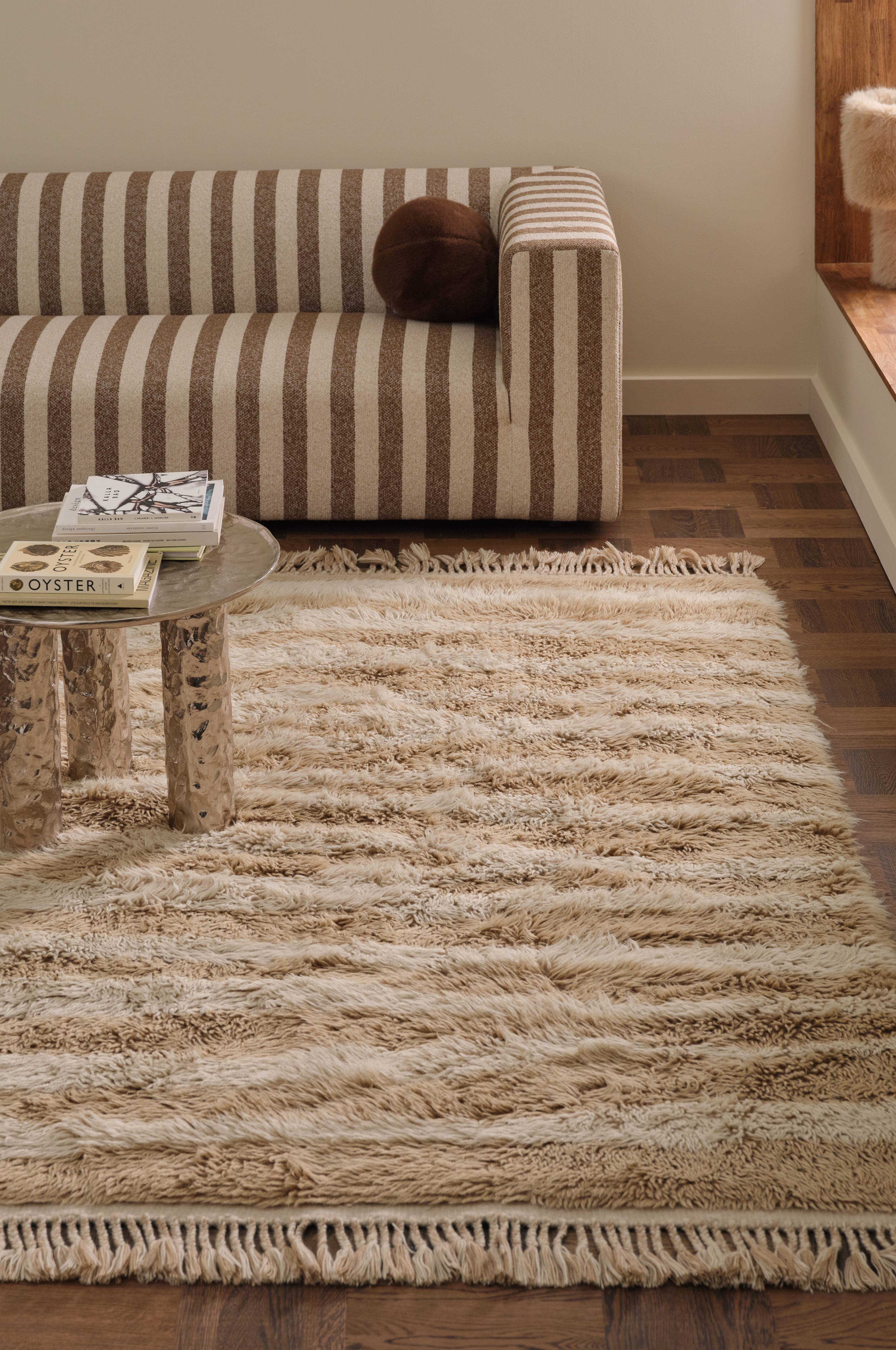 • Håndtuftet ryatæppe i uld • Flettede frynser på de korte sider • Rengøring: Ryatæpper i uld har på grund af den lange luv og uldens fibre en tendens til at fnugge i starten. Dette er en naturlig og normal proces for denne type tæppe, og vi anbefaler derfor regelmæssig støvsugning af tæppet. • For øget sikkerhed og komfort kan du bruge en skridsikker måtte, der holder tæppet på plads. Vi har skridsikre måtter i flere størrelser.
