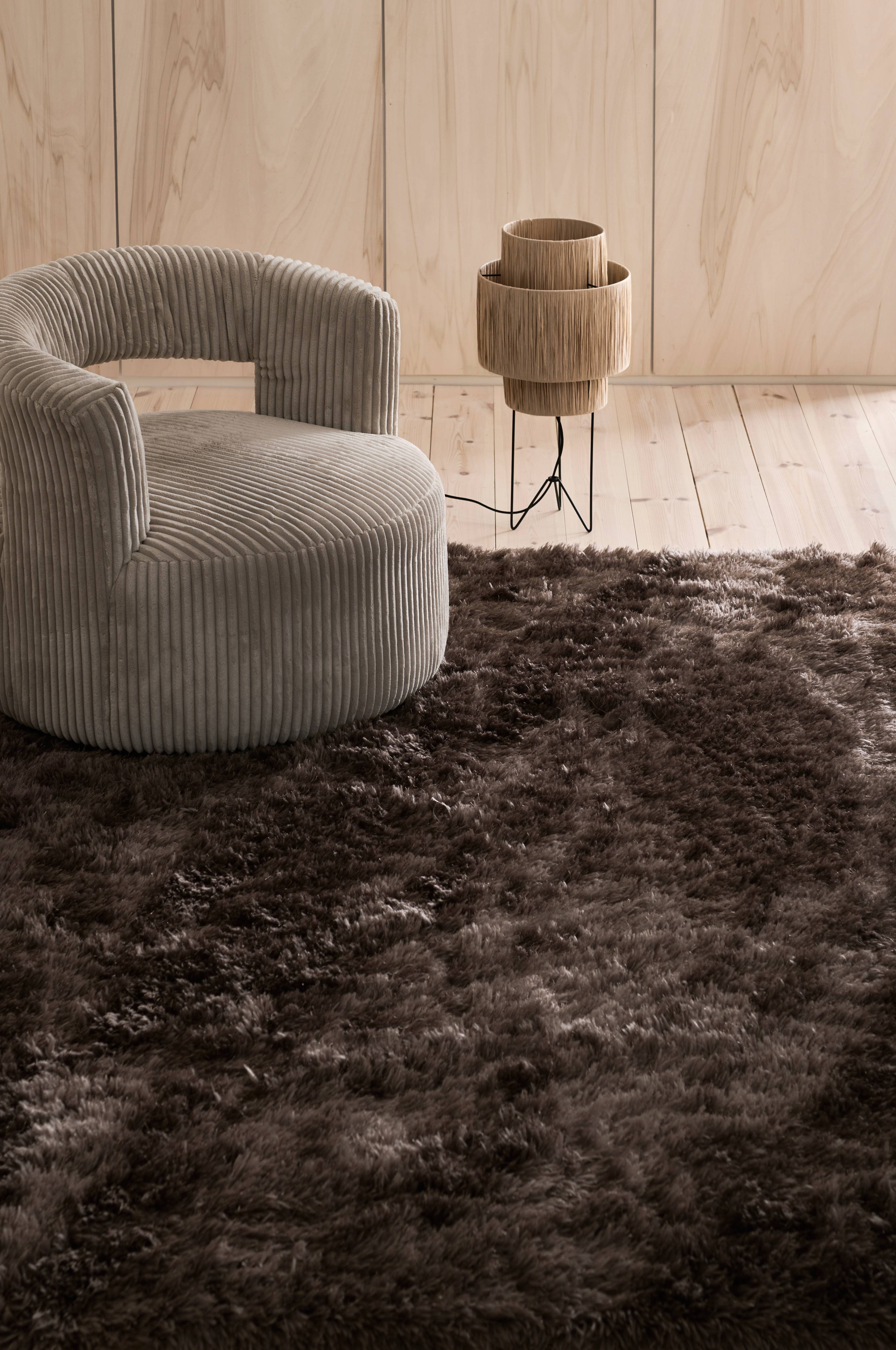 Ryatæppe med meget blød og tæt luv i to forskellige garner, en mat og en blank, som giver et levende udtryk. Luvhøjde 7 cm.