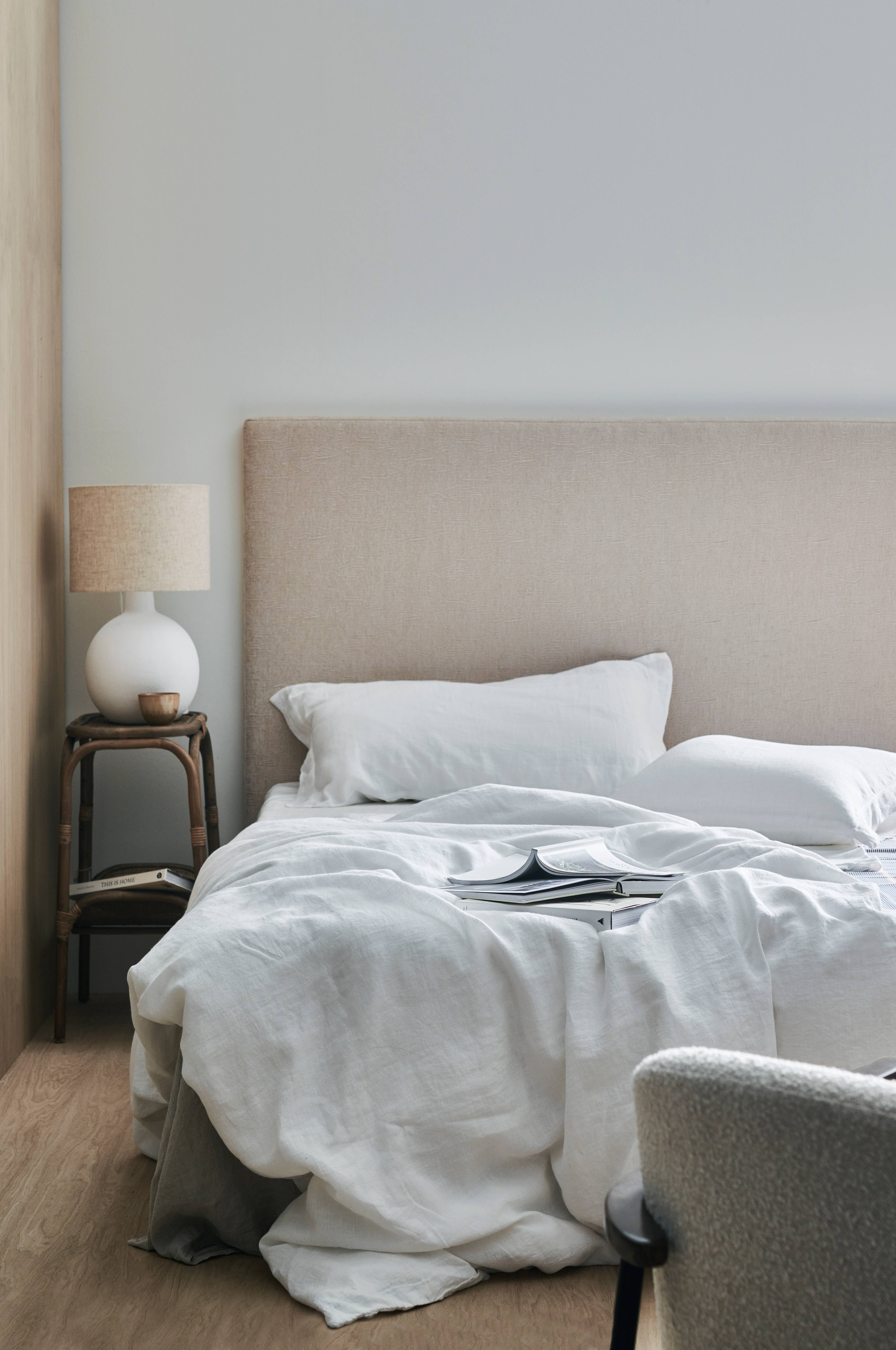 Sengegavl med kerne i FSC-certificeret træ og blød polstring af polyesterskum. Betræk i blødt, strukturmønstret velour med et mønster tone-i-tone. Findes i 2 bredder, hhv. 160 og 180 cm. Fastgørelsesanordning på bagsiden.