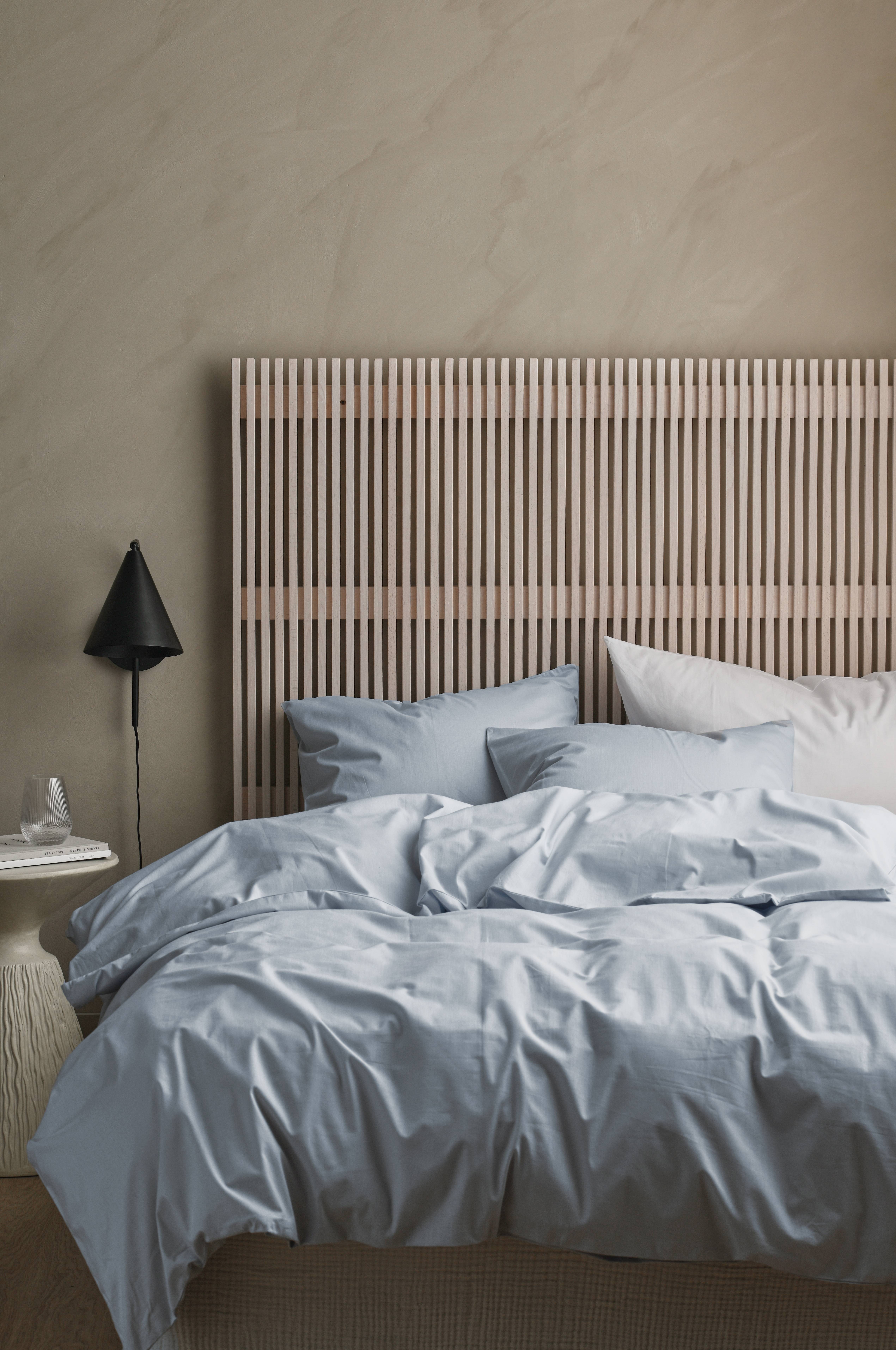 Sengegavl i massiv bøg med dekorative træribber. Til at hænge på væggen.