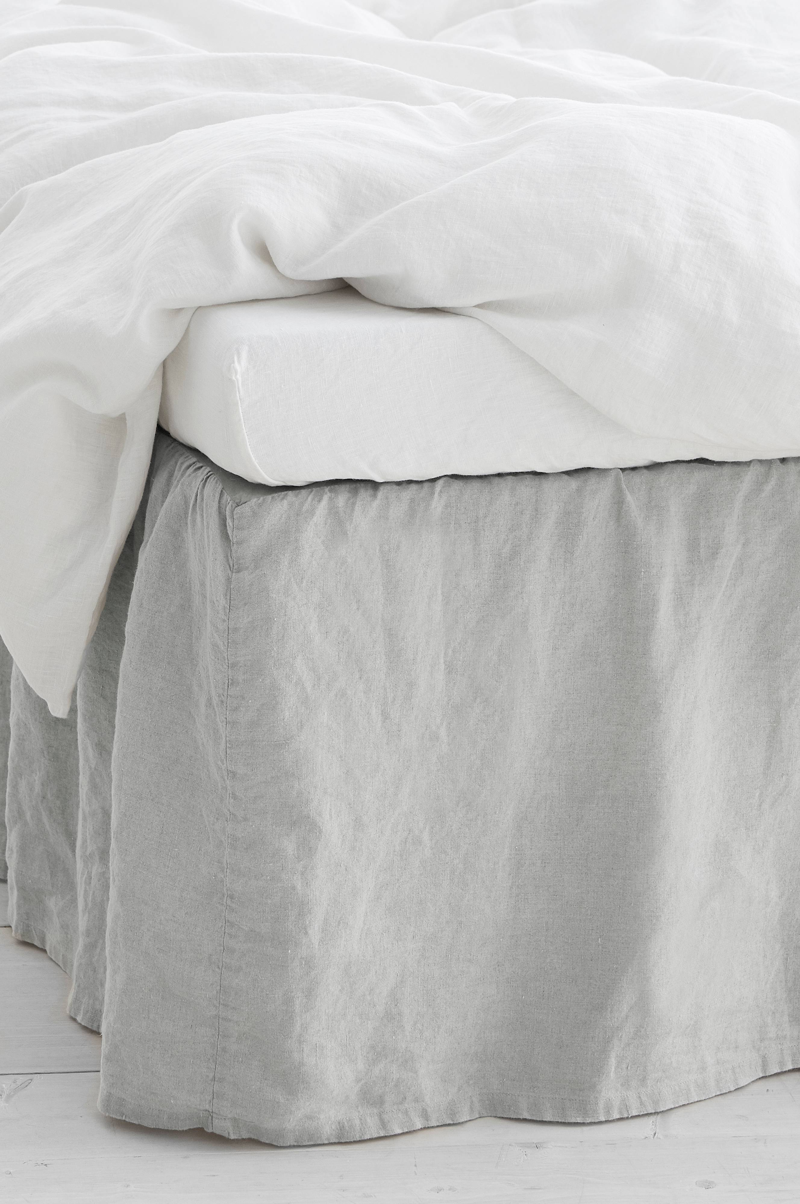 Sengekappe i vasket hørkvalitet af fransk hør med flade i bomuld. Løs, rynket pasform. Kappe på tre sider. Kappens længde 45 cm.