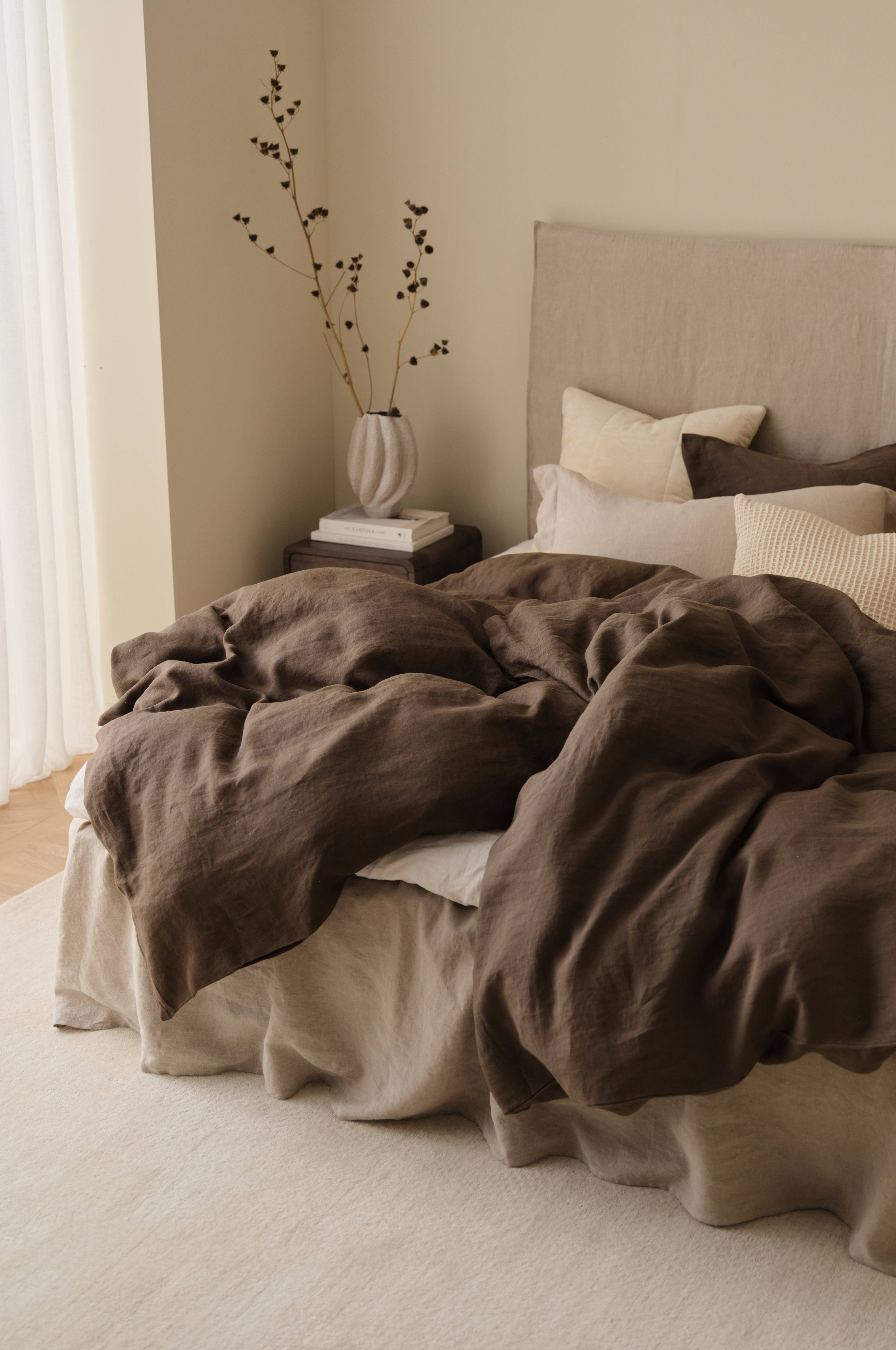 Smuk trendy farve. Vasket hør bliver bedre med brug. Åndbart, let materiale. Dun-dynes bedste ven for en god nats søvn