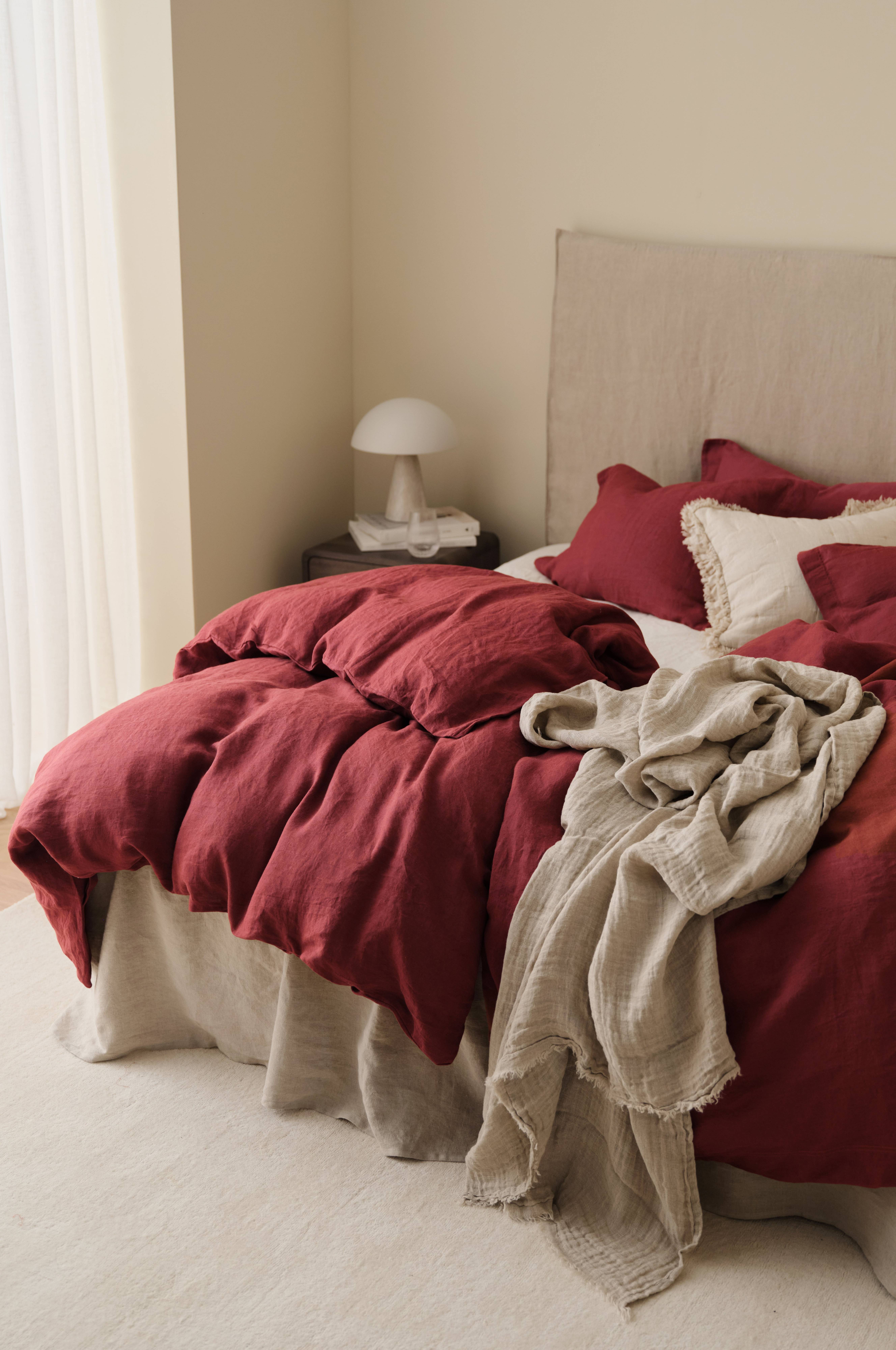Smuk trendy farve. Vasket hør bliver bedre med brug. Åndbart, let materiale. Dun-dynes bedste ven for en god nats søvn