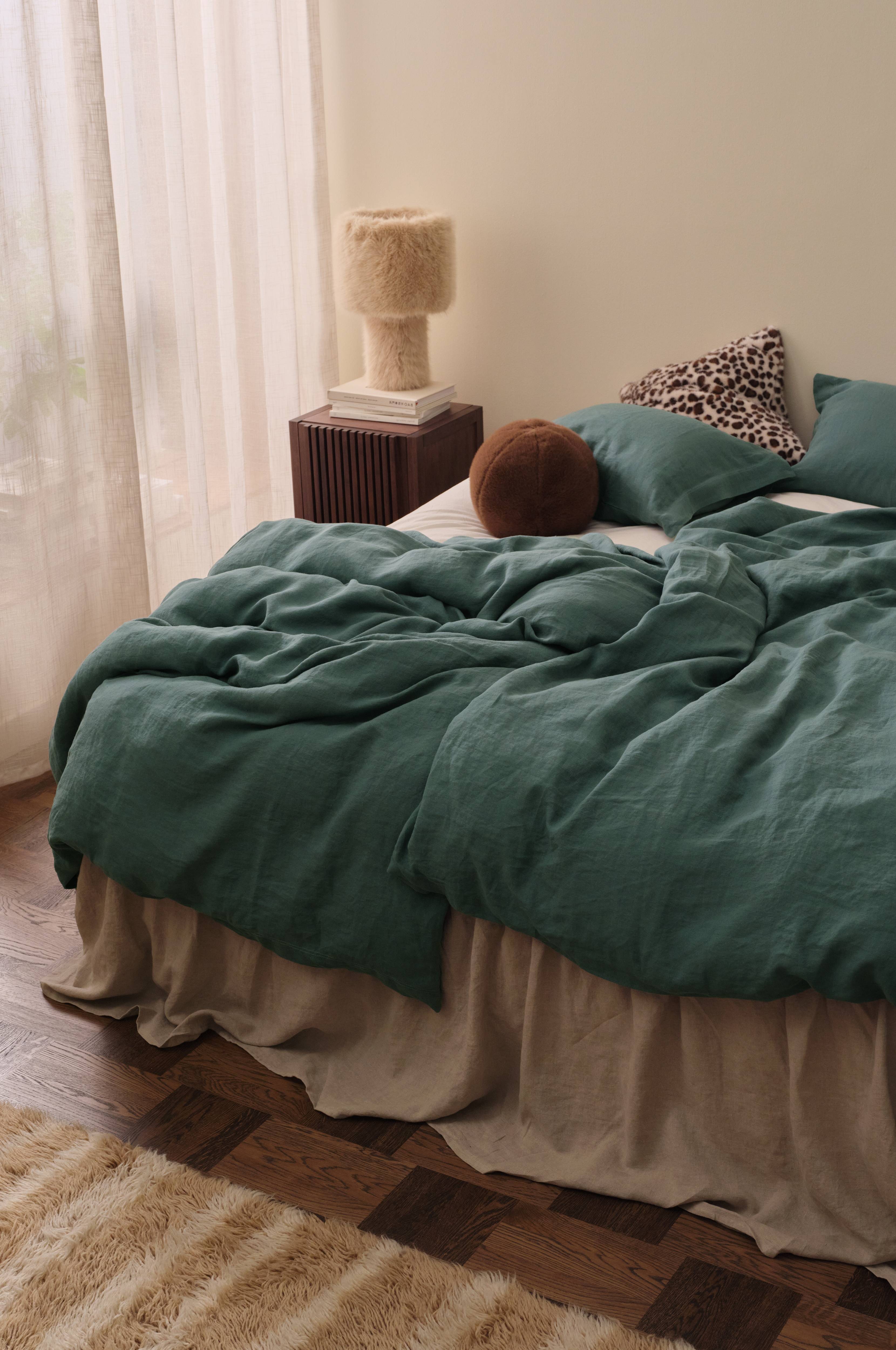 Så flot farve, jeg valgte bronzegrøn. Vasket og sovet så godt i nyredt seng. Så blødt og hyggeligt, og jeg anbefaler virkelig at købe et sæt hørdynebetræk, wow