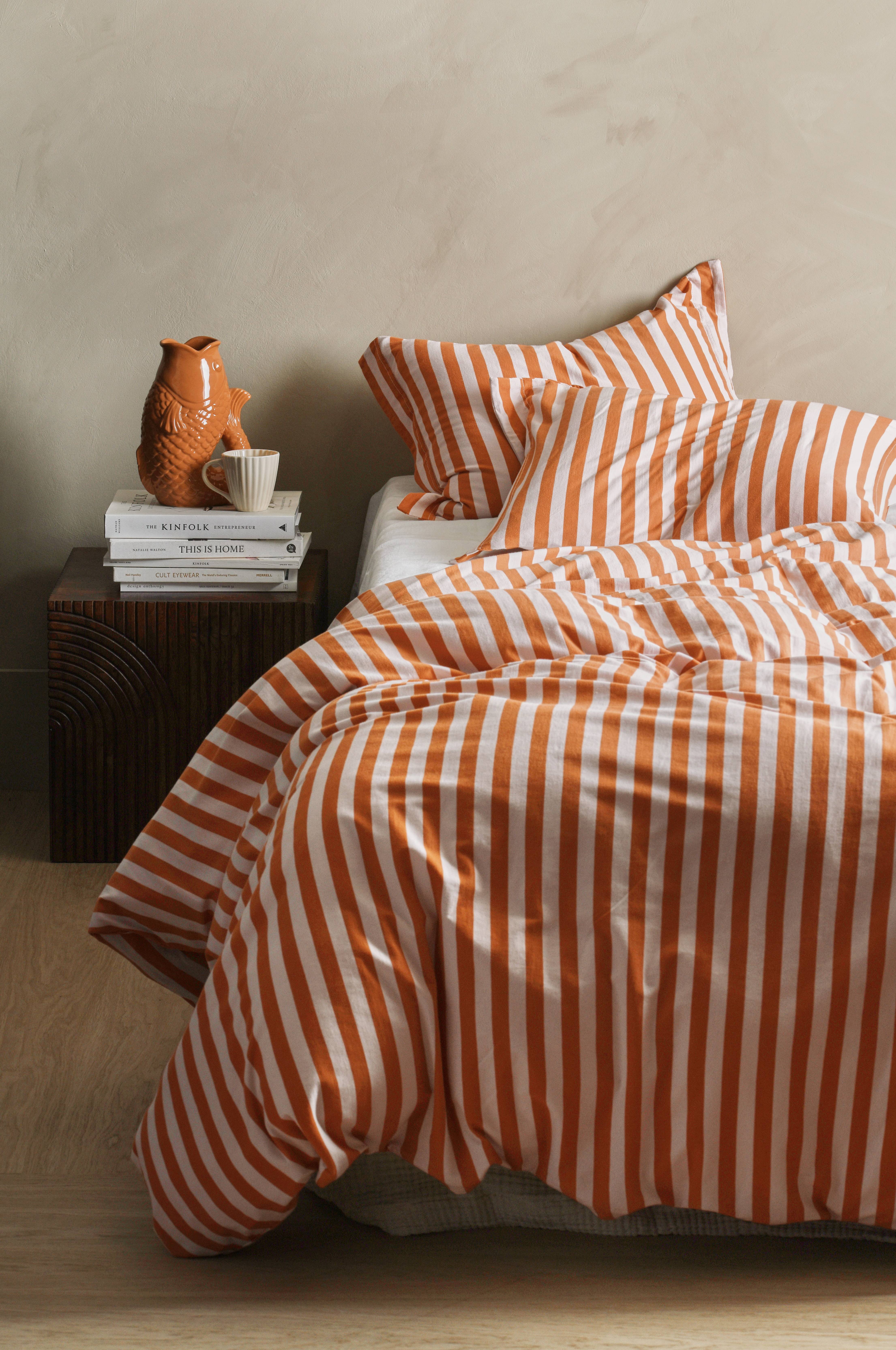 Dynebetræk 150x200 cm (til enkeltdyne) og pudebetræk 50x60 cm.