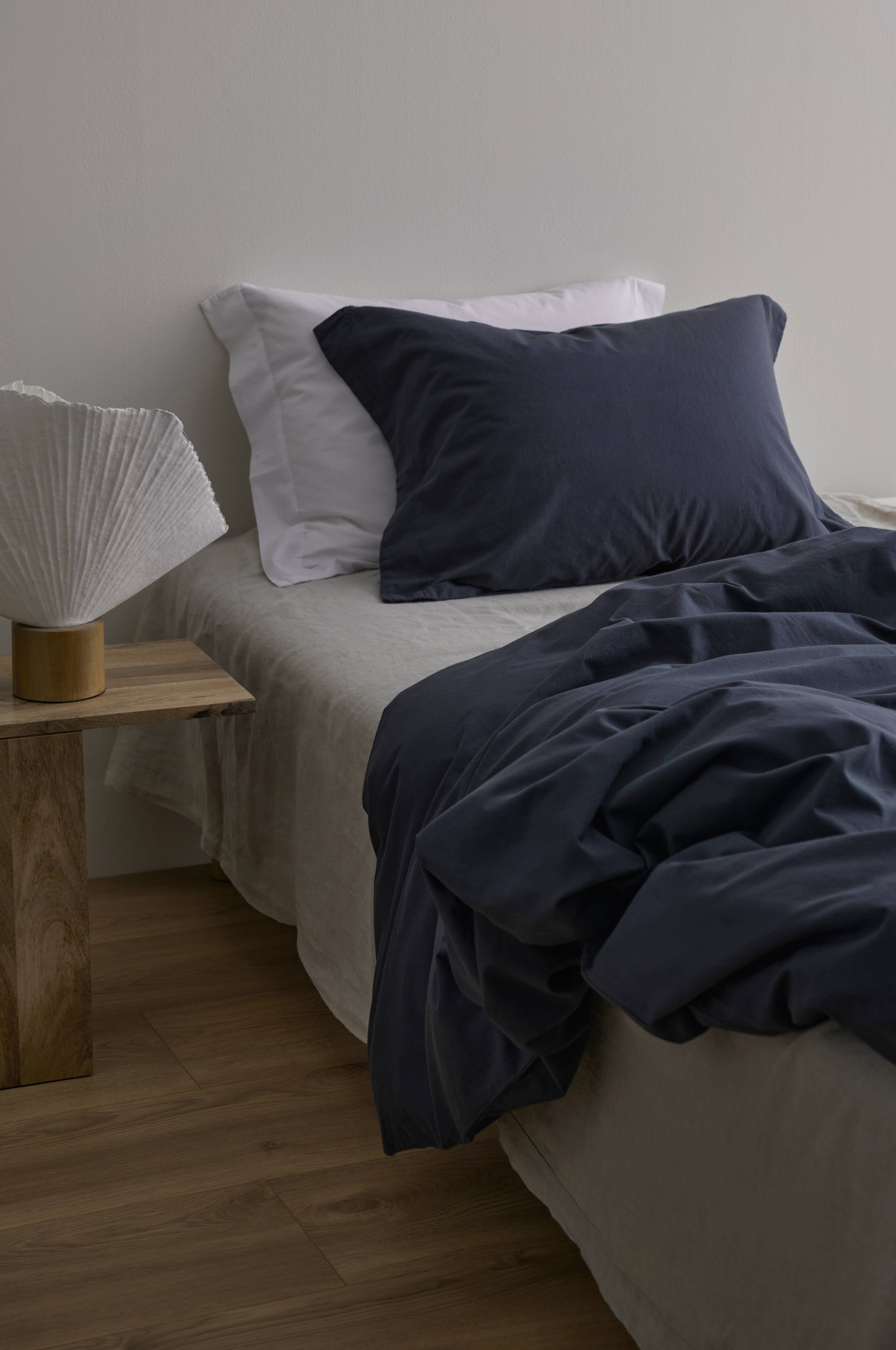 Sengesæt i skøn kvalitet af blødvasket bomuld. Trådtæthed 144 tc. Stykfarvet. Trykknapper i kanten forneden på dynebetrækket.