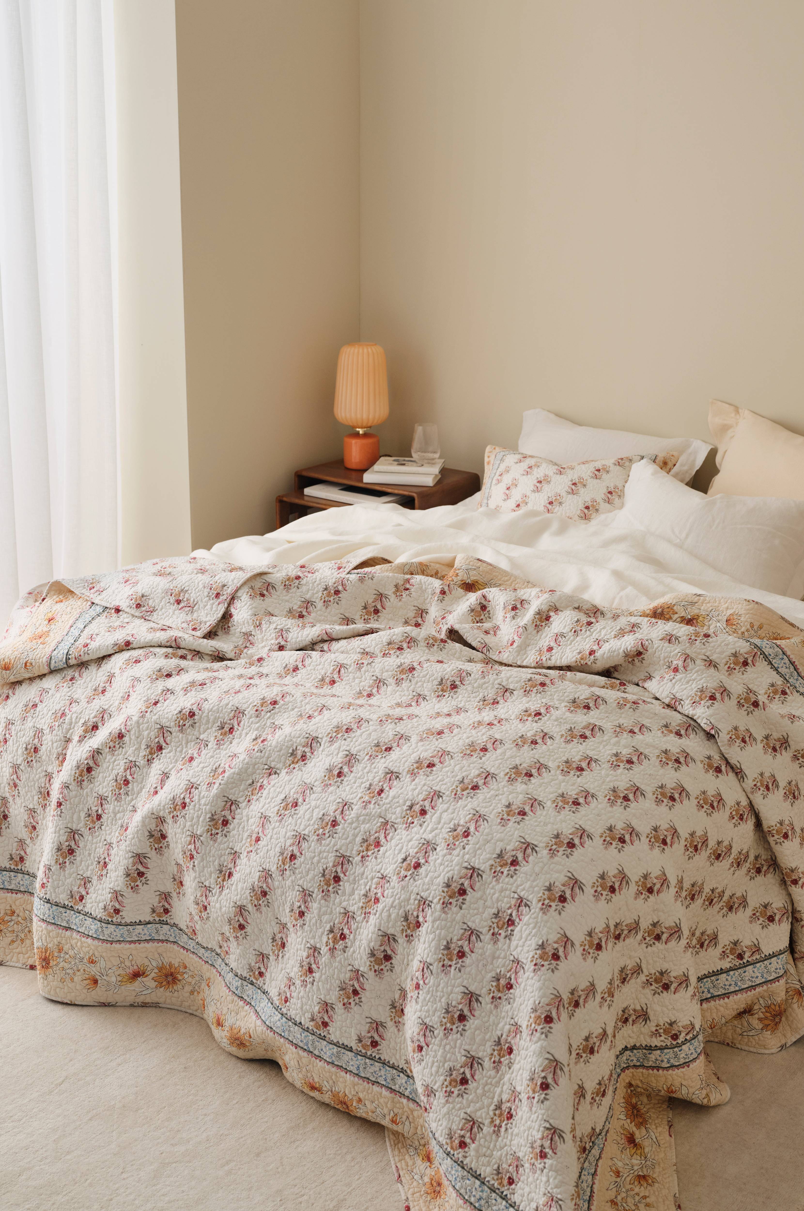• Quiltet, let foret sengetæppe i vasket bomuld • Printet mønster • Dekorativ ramme hele vejen rundt • Sengetæppet findes i tre størrelser: 150x250 cm (passer til seng 90x200 og 105x200 cm) 180x260 cm (passer til seng 120x200 og 140x200 cm) 260x260 cm (passer til seng 160x200 og 180x200 cm)