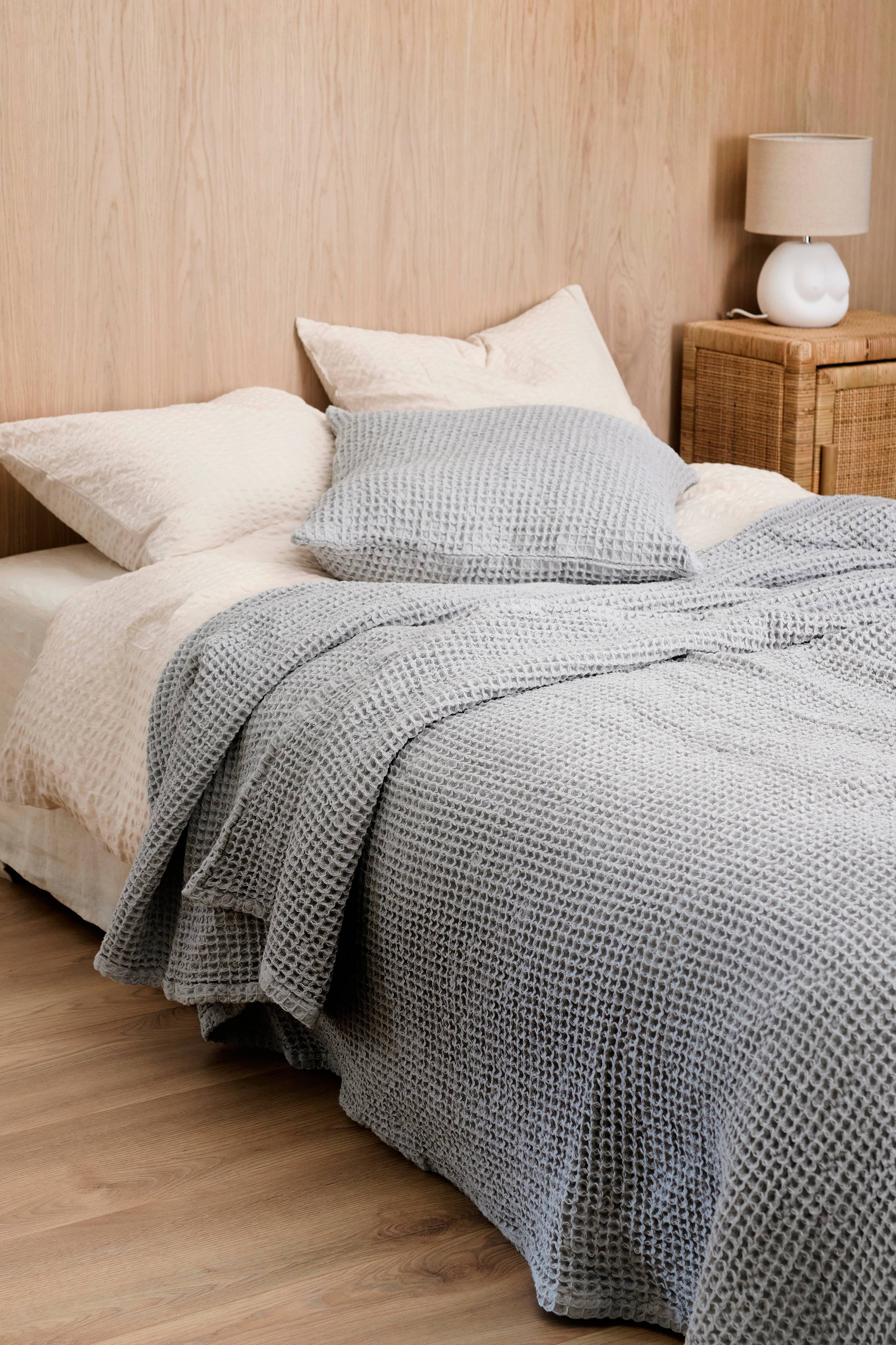 Sengetæppe i vasket bomuld med kraftigt vaffelmønster.