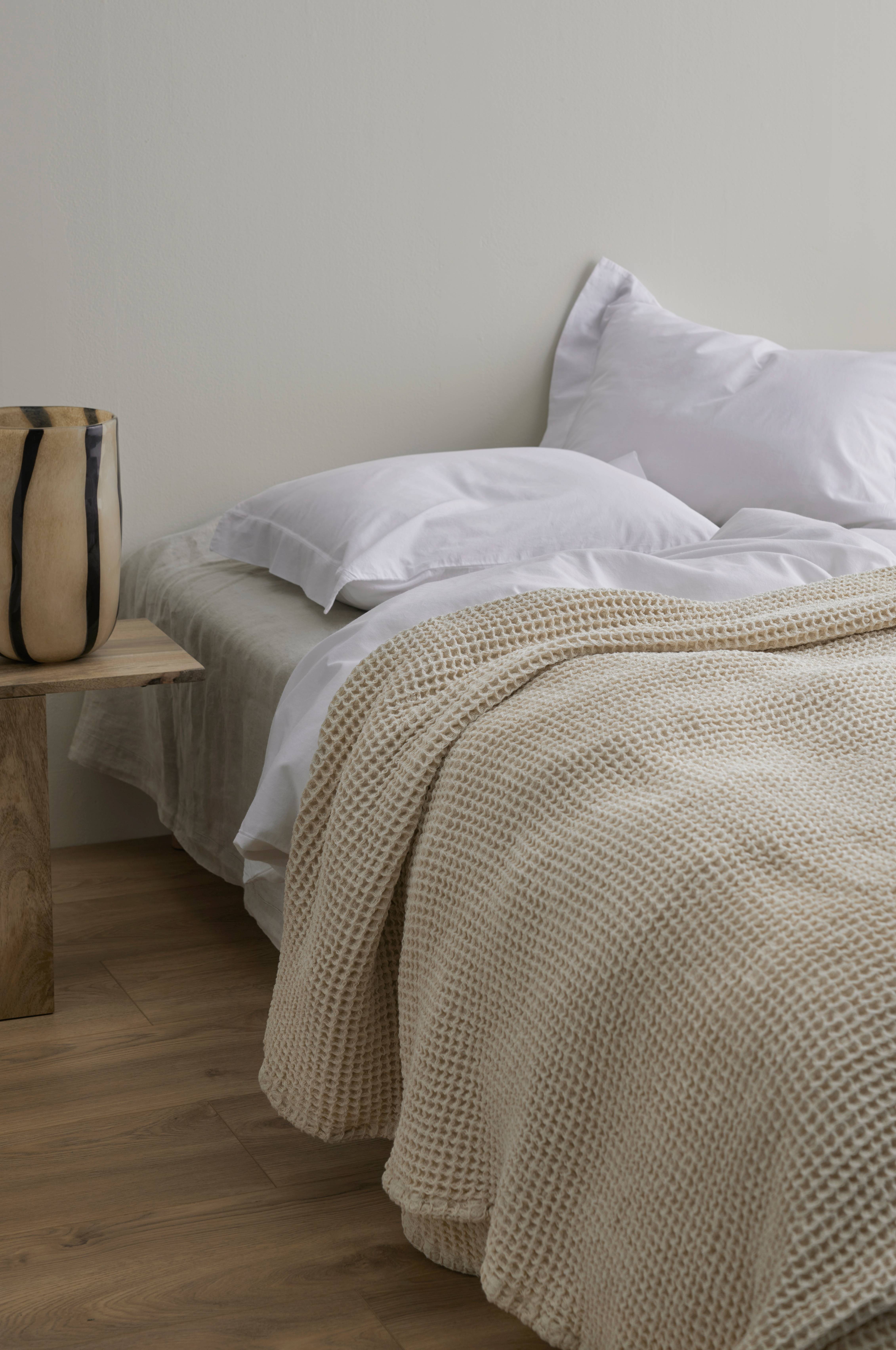 Sengetæppe i vasket bomuld med kraftigt vaffelmønster.