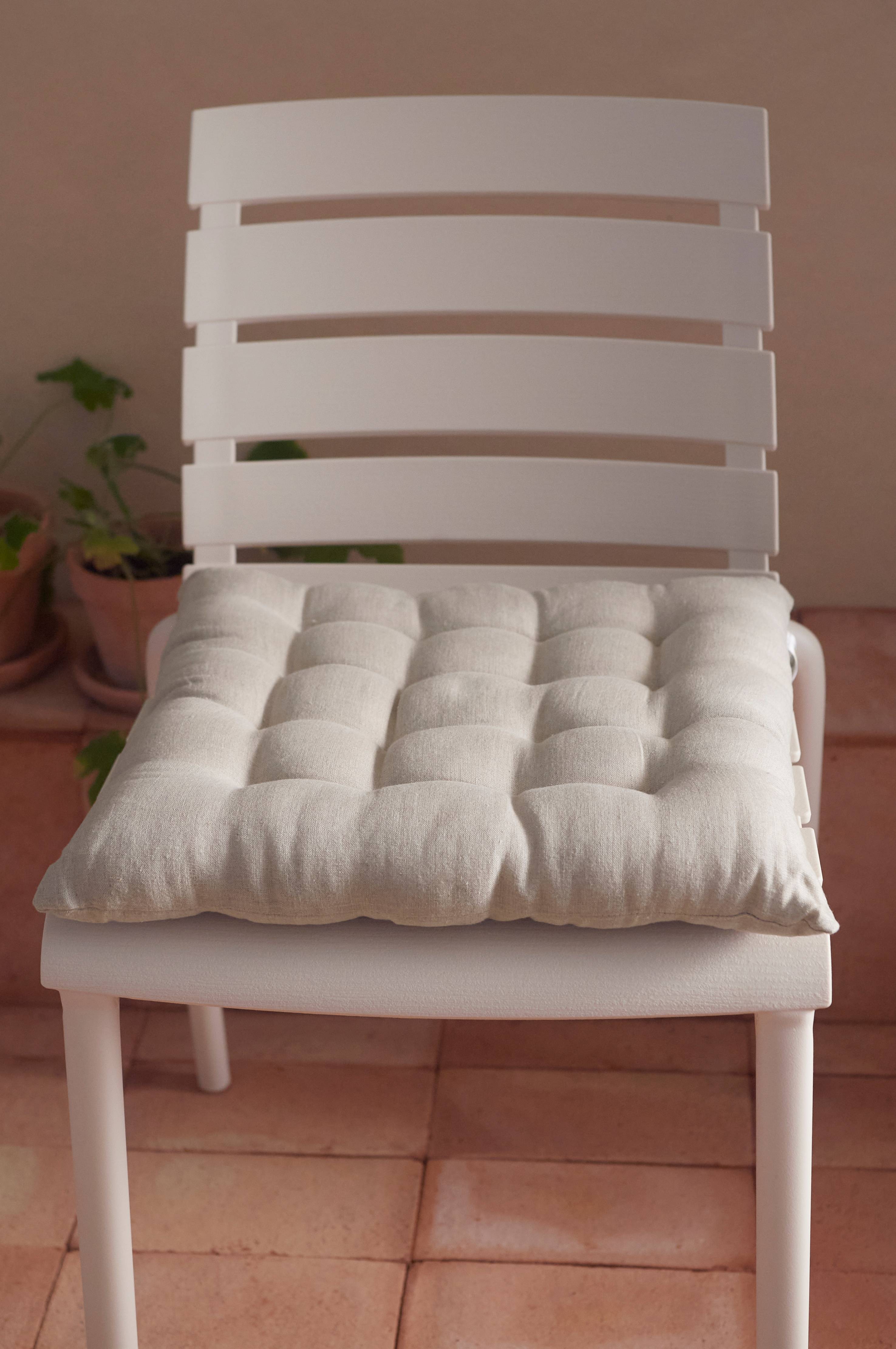 Siddehynde i blød vasket kvalitet af fransk hør med vintagelook og dekorative, håndsyede sting. Fyld af polyester. Str. 40x40x5 cm.