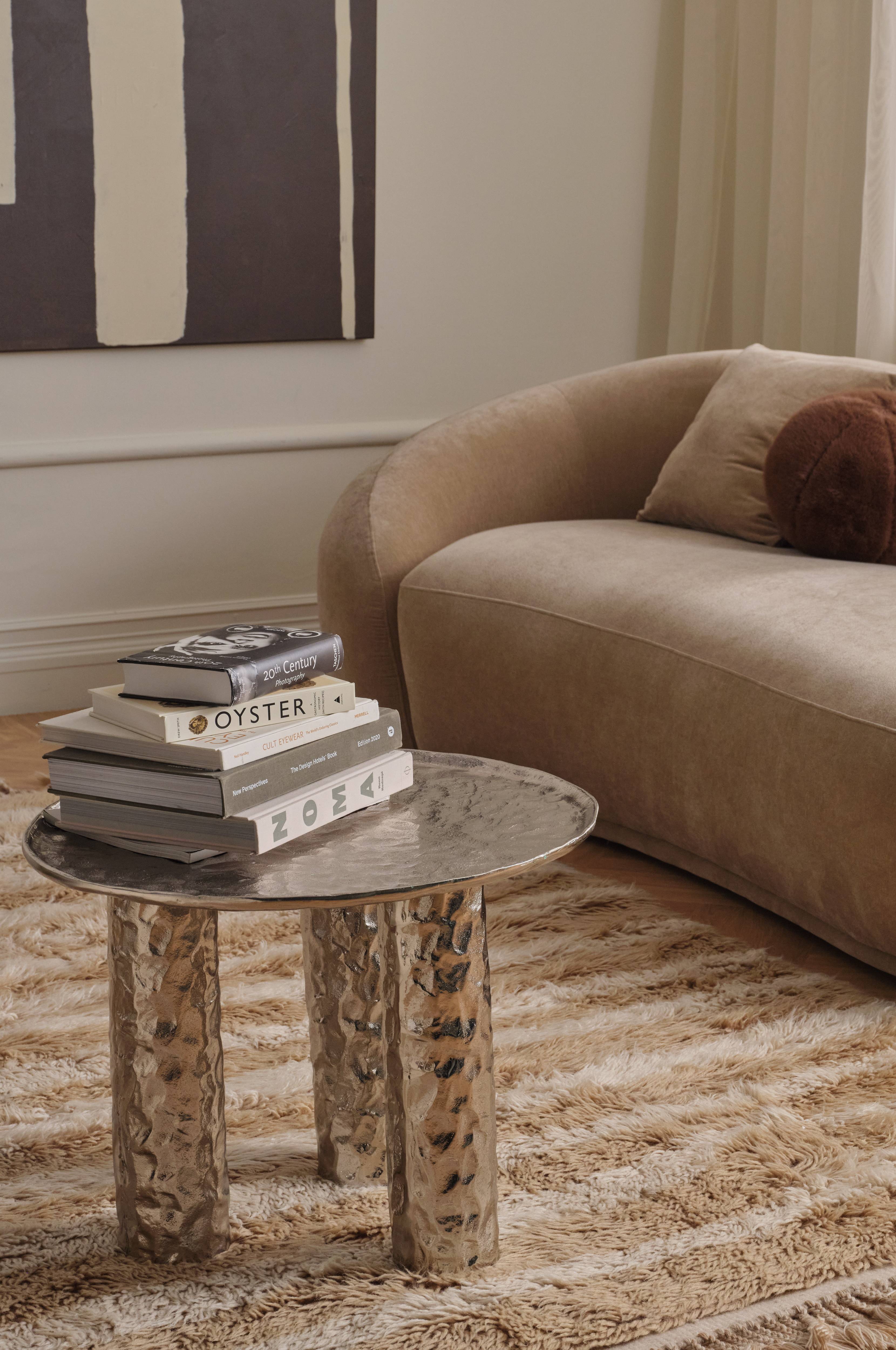 • Rundt sidebord i nikkelbelagt aluminium• Hamret afslutning