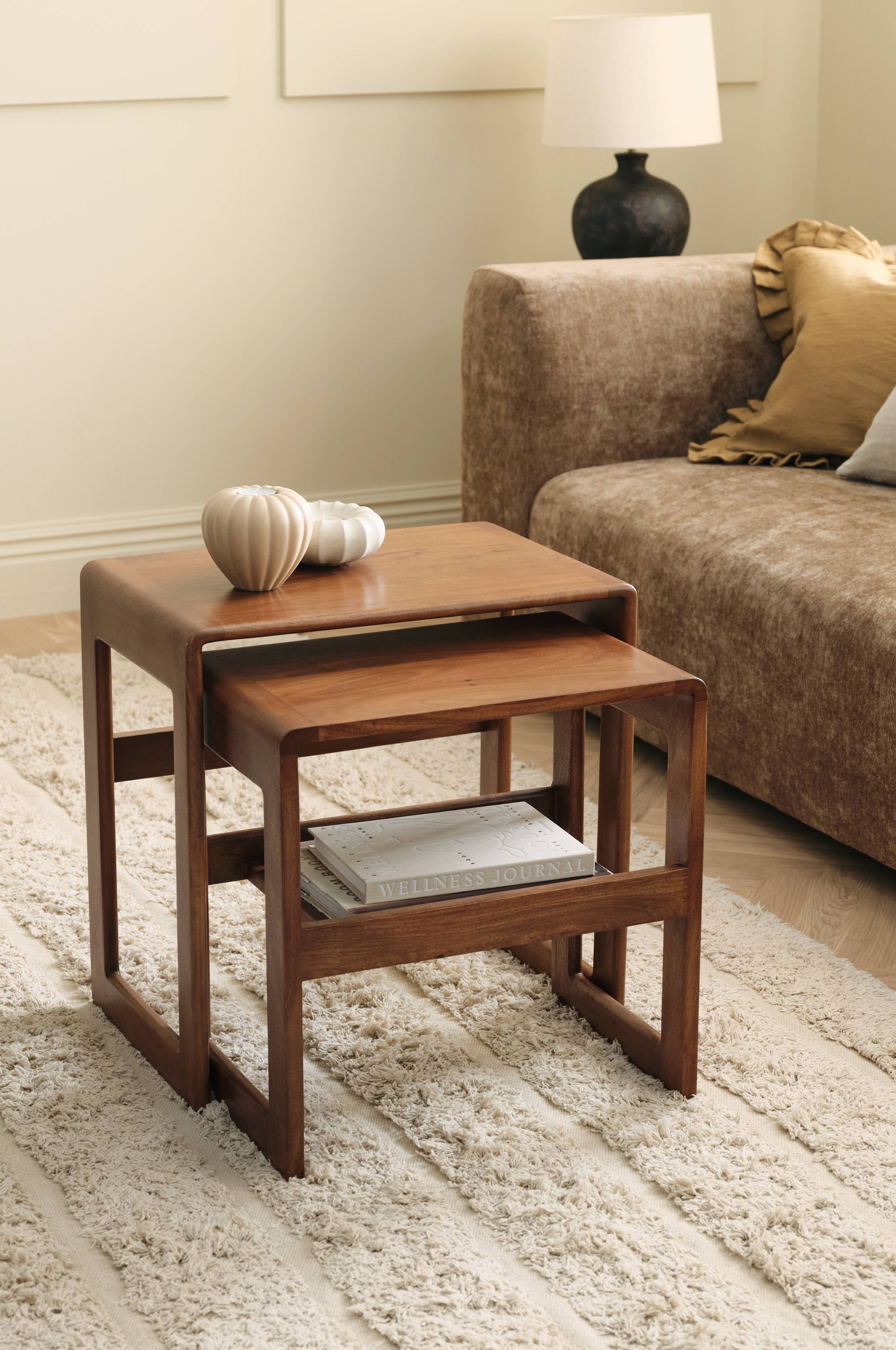 • Rundt sidebord i Mangotræ med vendet strukturmønster