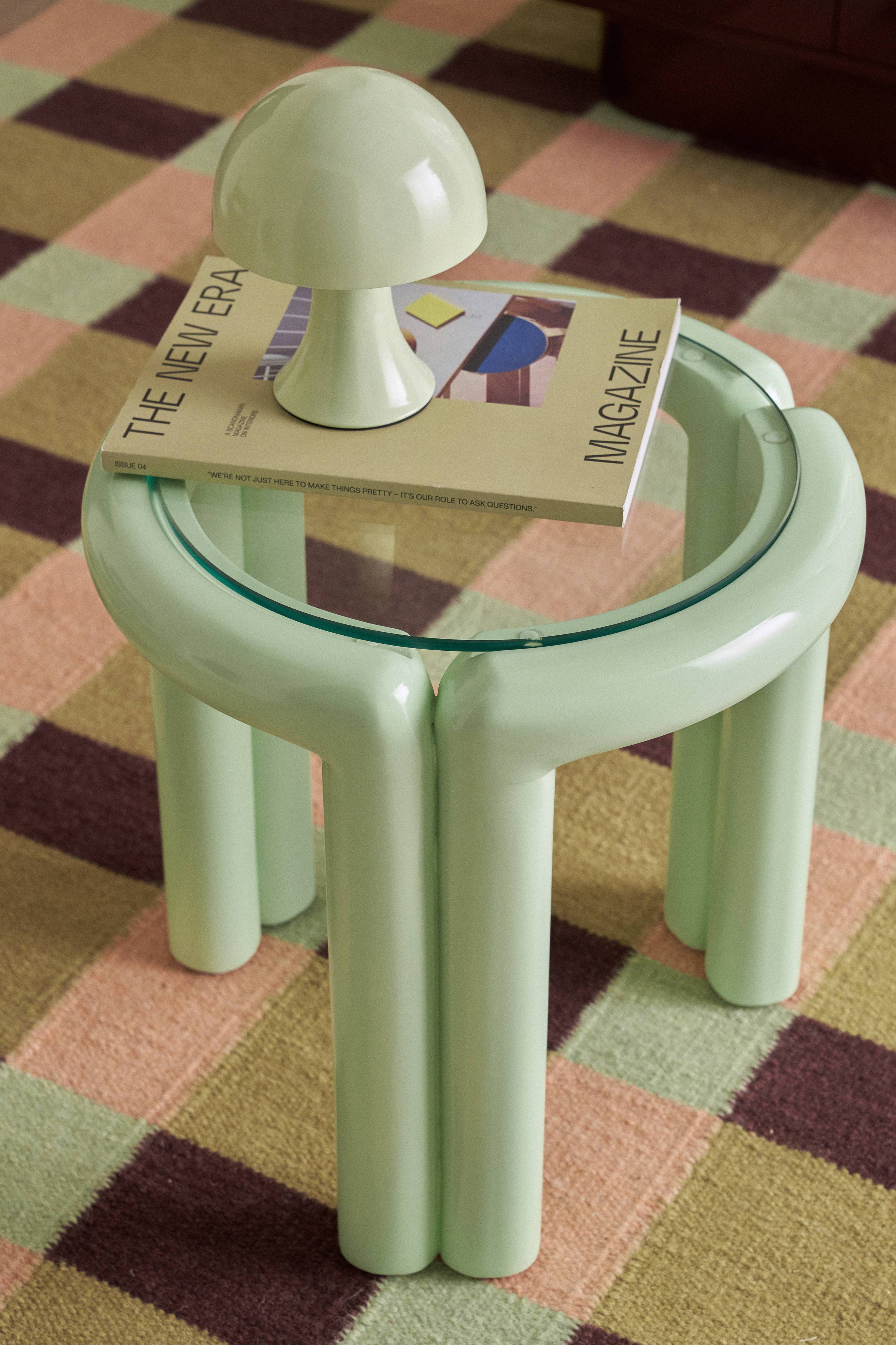 • Rundt sidebord i skinnende, lakeret MDF• Bordplade i hærdet glas• Maks. vægt: 50 kg
