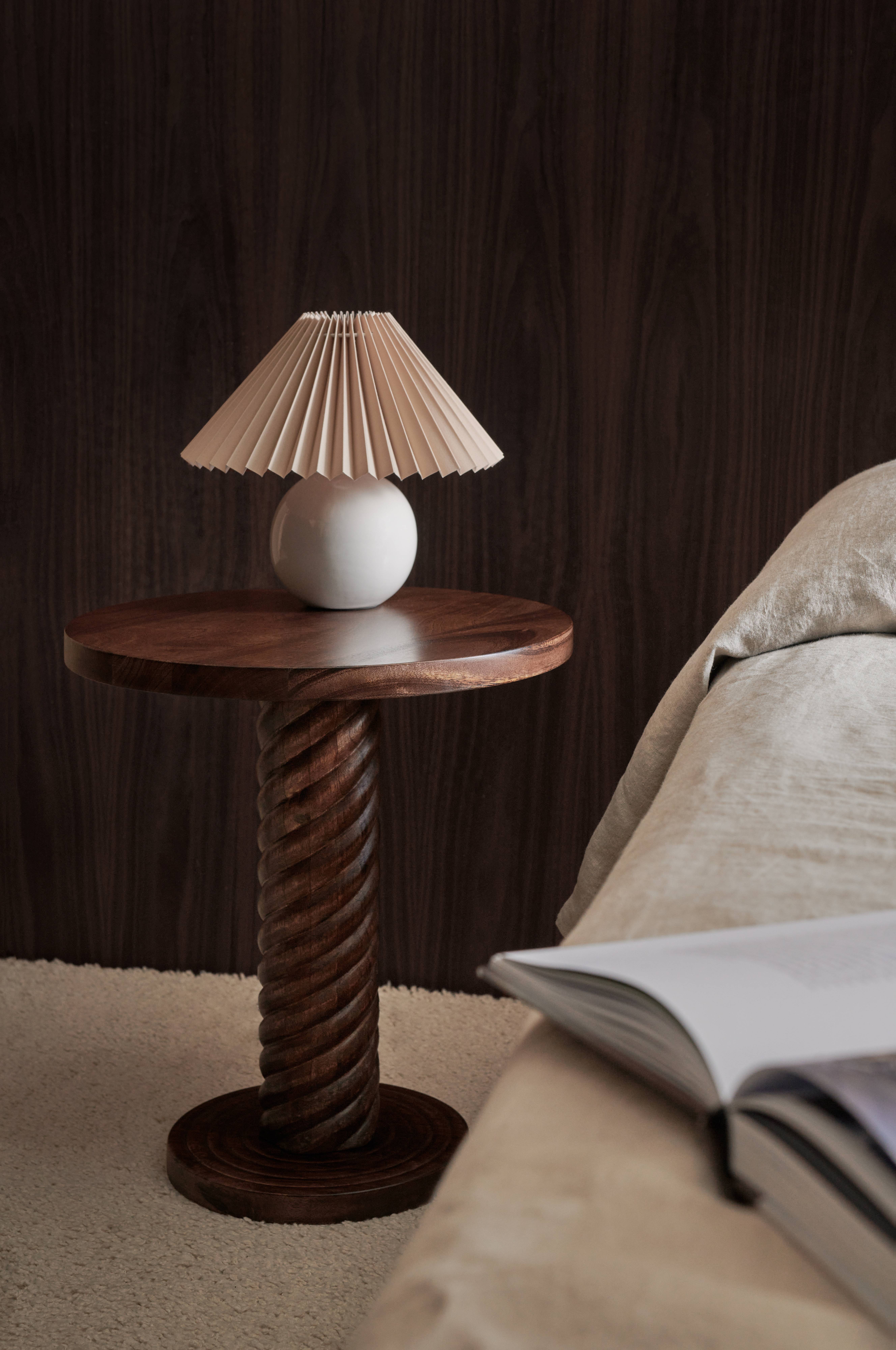 Rundt sidebord af mangotræ med vokset finish. Rund, drejet baset med snoet design.