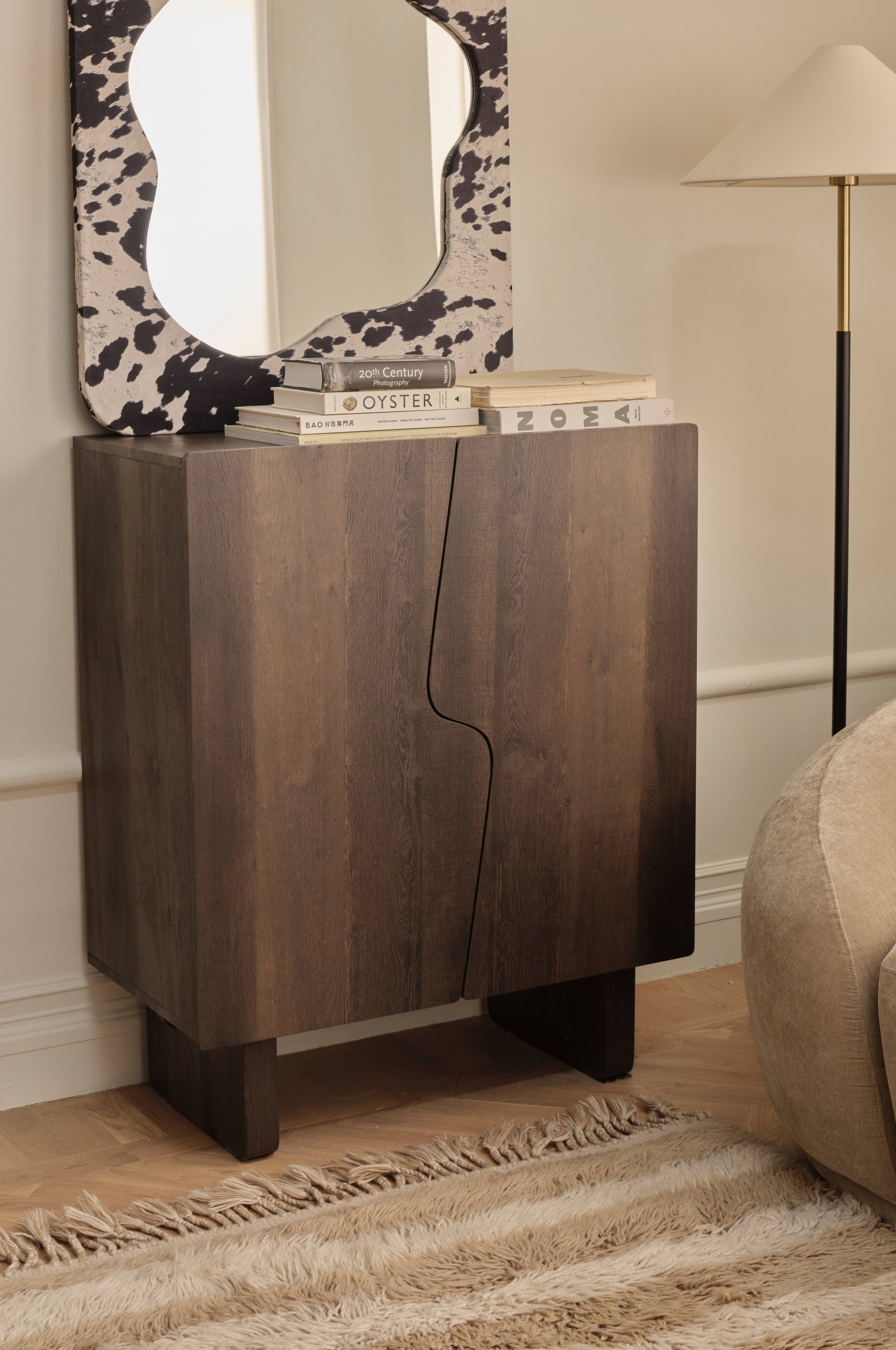 • Skab i forpurret MDF• Døre med skråtskåret mønster• Polstret lukning• To faste hylder• Afstand mellem hylderne: 23 cm