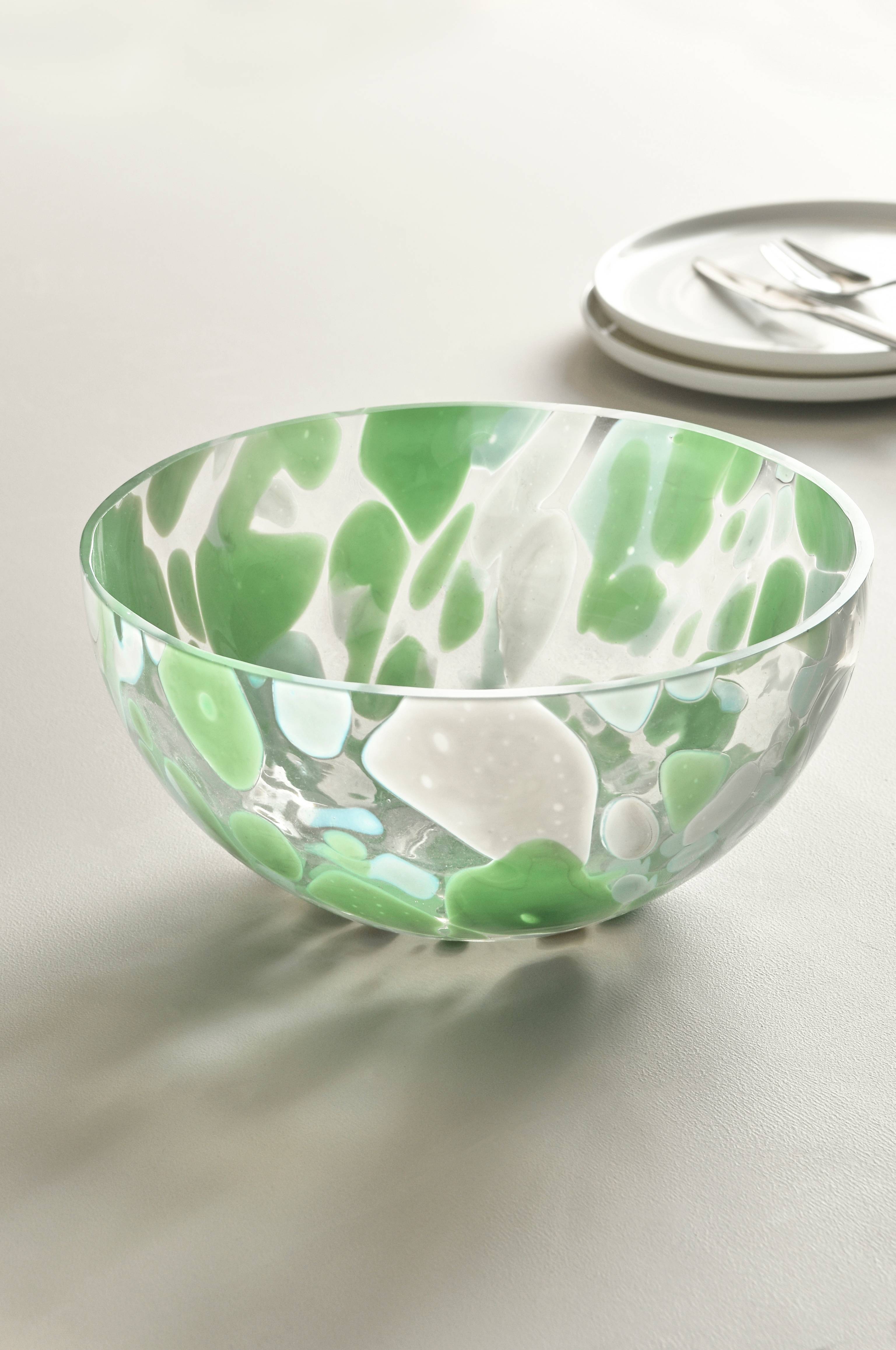 Skål i glas. Højde 13,5 cm. Diameter 25 cm.